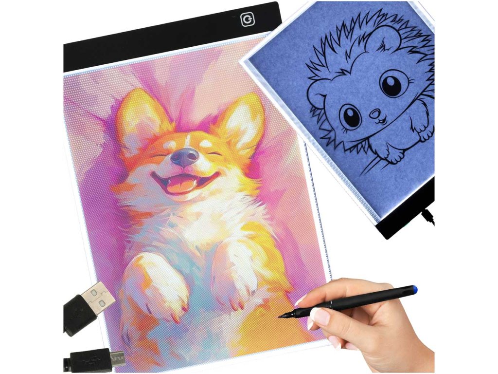 Rovnomerné a pre oči bezpečné LED podsvietenie zaručuje pohodlie a bezpečnosť aj počas dlhej práce. Robustná, ľahká a tenká konštrukcia vám umožní vziať si tabuľu kamkoľvek so sebou - do školy, knižnice, kaviarne alebo dokonca do prírody! Napájanie z USB zaručuje slobodu pri tvorbe, nech ste kdekoľvek.
