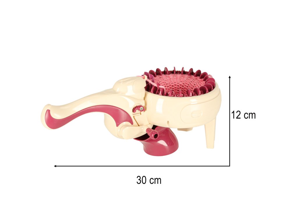 - Vek: 6+- Farba: béžová, tmavoružová- Materiál: plast (plášť), priadza: 70 % akryl, 30 % vlna- Dĺžka stroja: 30 cm- Výška: 12 cm- Pracovný priemer: 13,5 cm- Dĺžka ihly: 14 cm- Dĺžka háčkovania: 8 cm- Rozmery balenia: 1 ks: 43,5 × 33 × 12 cm