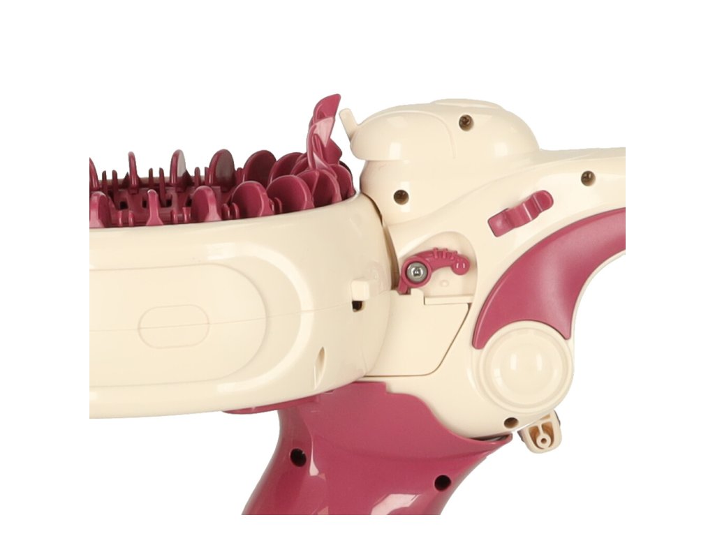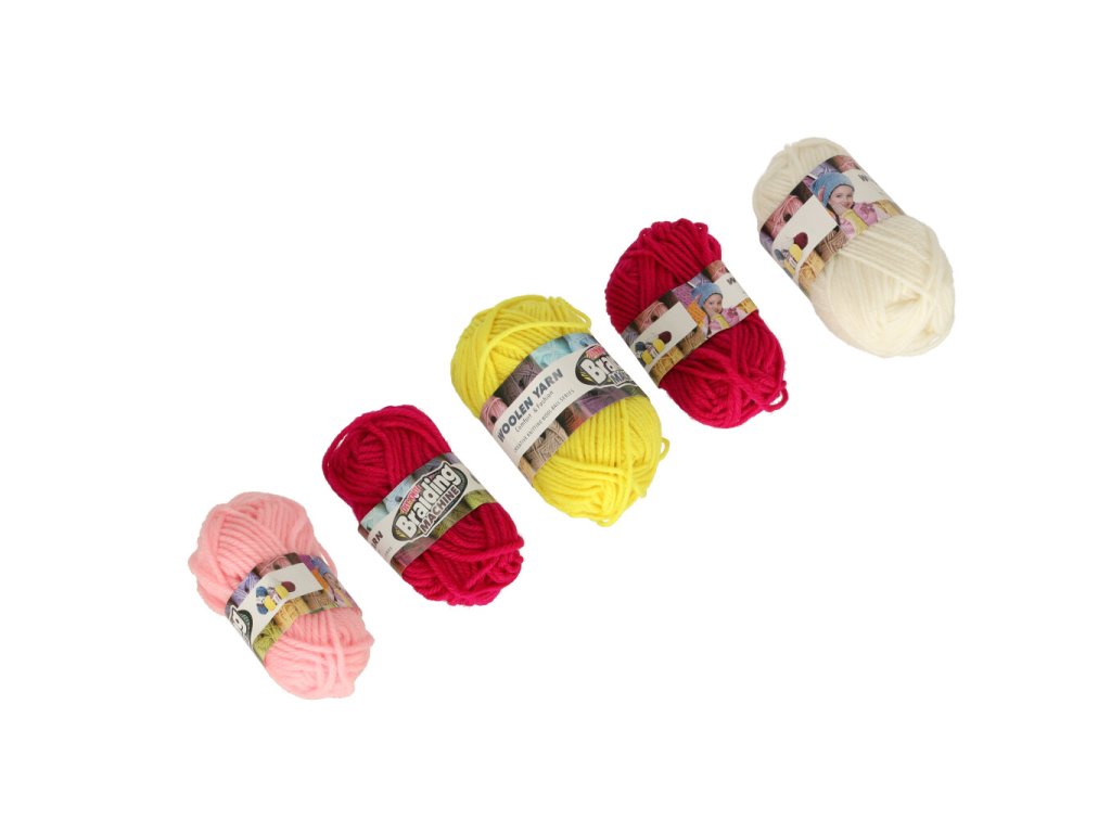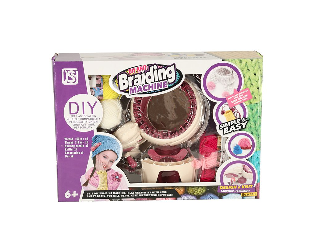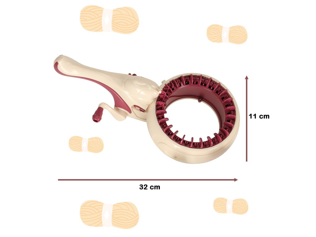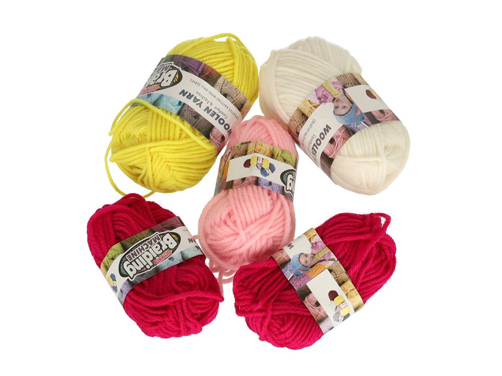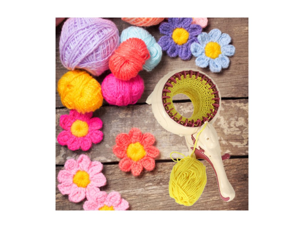 Okrem stroja je súčasťou balenia aj ďalšie nevyhnutné príslušenstvo - priadza v 5 farbách (modrá, biela, žltá, svetloružová a tmavoružová), háčik na háčkovanie a plastová ihla s veľkým očkom! Takže v skratke - kompletná súprava na pletenie!