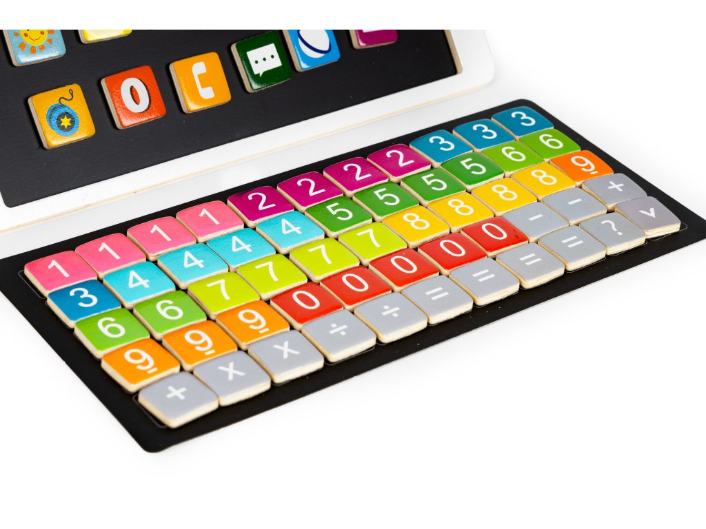 Magnetická drevená tableta je inovatívna vzdelávacia hračka určená na rozvoj matematických a kognitívnych schopností detí. Súprava obsahuje 55 magnetických štvorcov s číslami a matematickými symbolmi, ktorý umožňuje deťom vykonávať jednoduché matematické operácie. Okrem toho sada obsahuje 30 magnetických obrázkov, čím sa batoľatám otvára možnosť vytvárať farebné a kreatívne vzory.