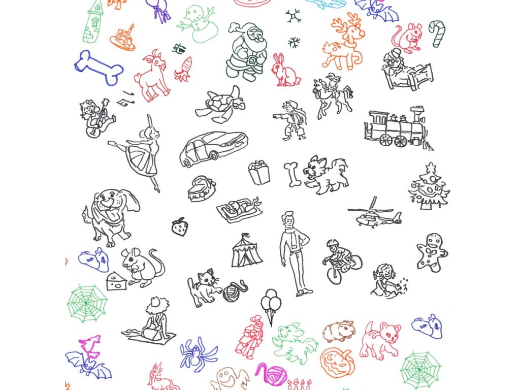 - 6x obrázkové listy s 12 obrázkami na každom z nich - 72 motívov na kreslenie