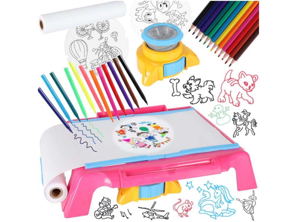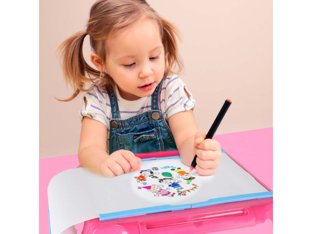 Tvarový kresliaci stôl s projektorom ružový