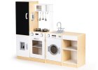 Detská kuchynka so zvukmi a LED drevenými veľkými otváracími skrinkami 7 doplnkov ECOTOYS