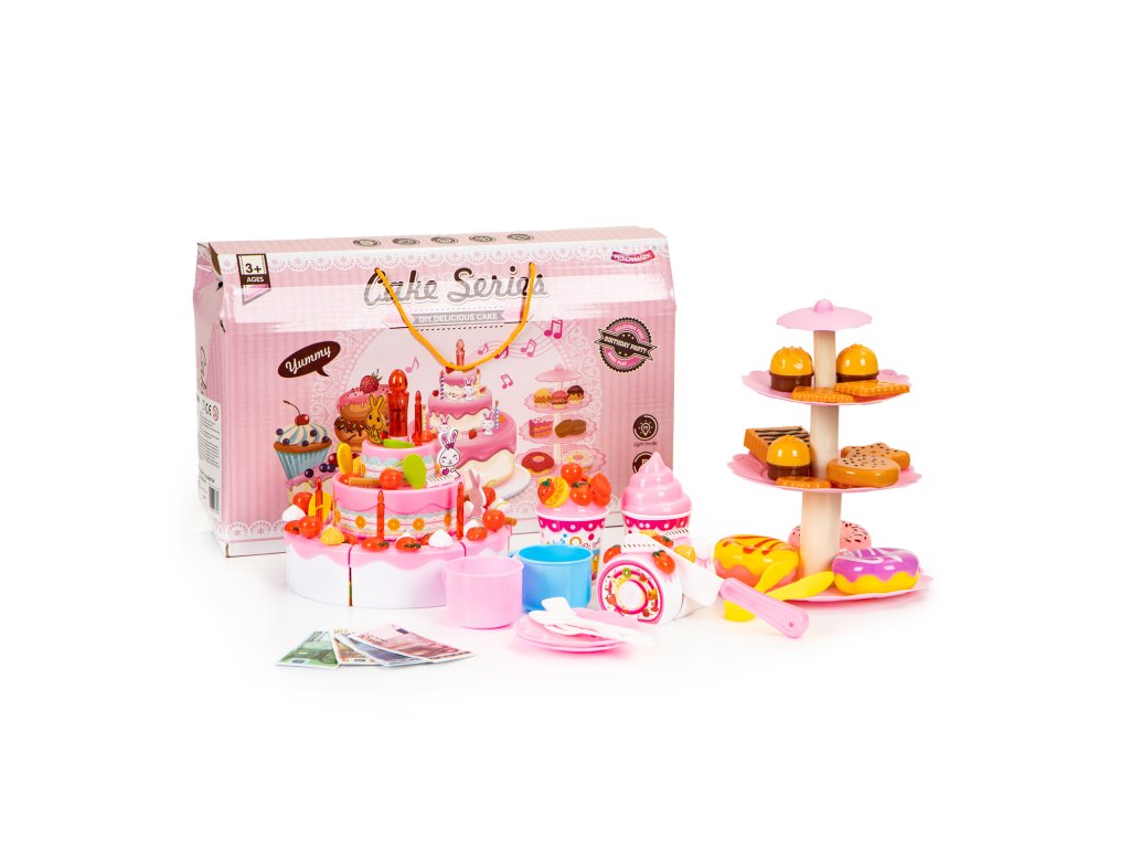 Okrem torty súprava obsahuje aj ďalšie farebné sladké doplnky, ktoré spríjemnia zábavu ešte pútavejšie.