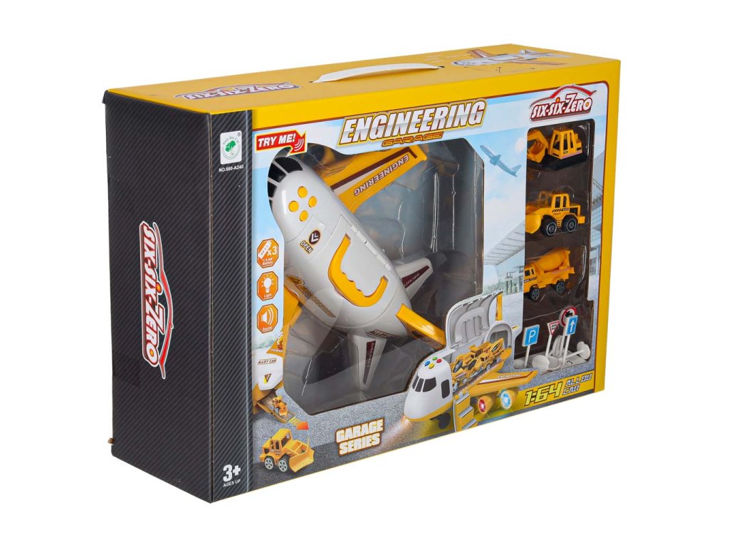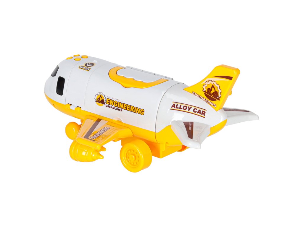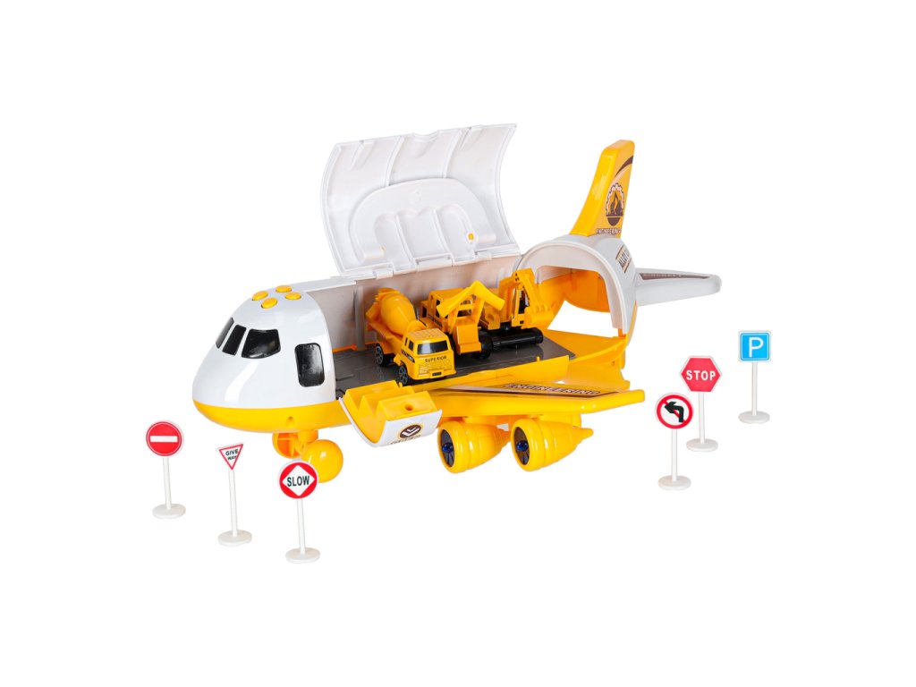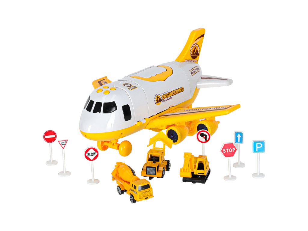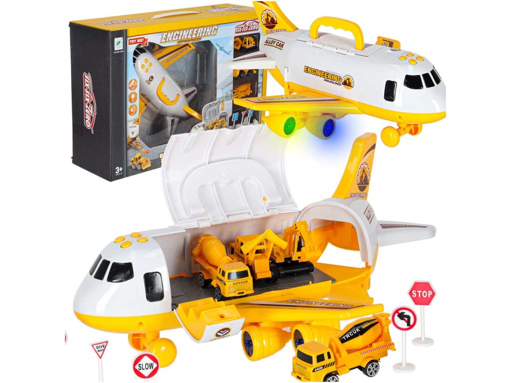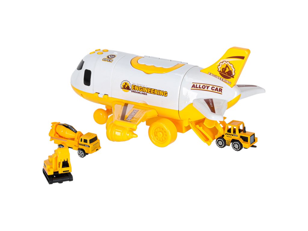 Hračky, lietadlo aj vozidlá, sú sú vybavené kolesami aby sa dali ľahko premiestňovať po stavenisku.