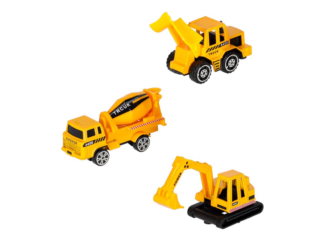 Sada obsahuje 3 stavebné stroje v žltej farbe:
