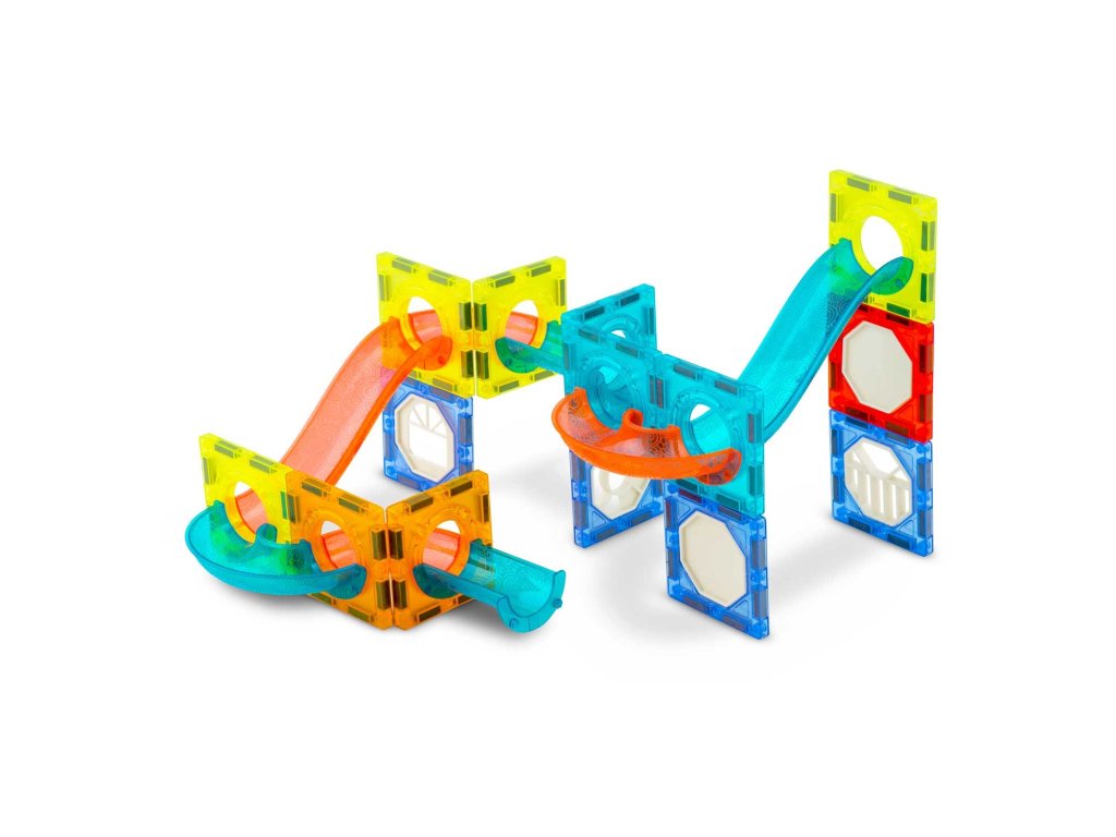 Tieto bloky podnecujú kreativitu mladých myslí a prenášajú deti do sveta, v ktorej sa loptičky preháňajú a kotúľajú po napínavej dráhe na každom kroku. Konštruovaním a prestavovaním si deti zdokonaľujú základné kognitívne zručnosti, zvyšujú schopnosť riešiť problémy a zdokonaľujú priestorové povedomie - a pritom sa vzrušujúco zabávajú!