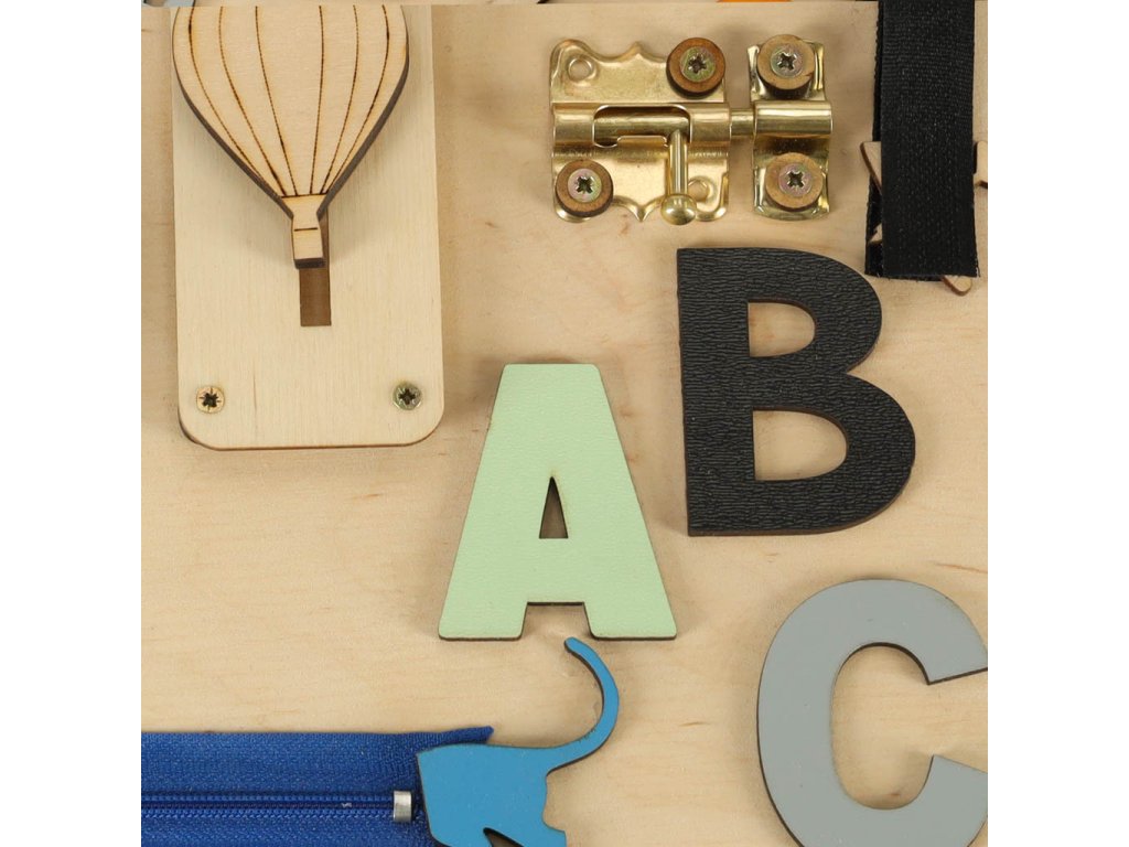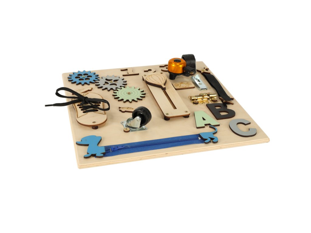 DREVENÁ SENZORICKÁ MANIPULAČNÁ TABUĽA 30X30CM