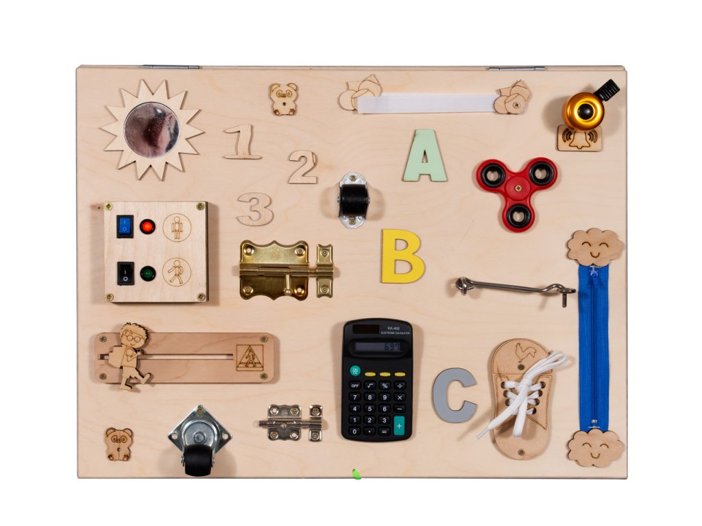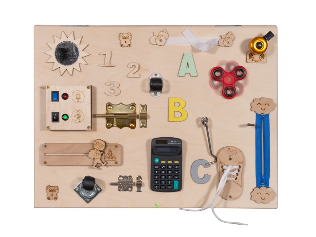 Existujú však presne takéto dosky? Je to použiteľná plocha, v tomto prípade drevená, na ktorej je množstvo menších prvkov - všetky sú špeciálne vybrané tak, aby poskytovali vášmu dieťaťu správny rozvoj!