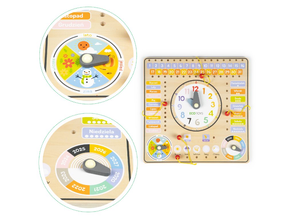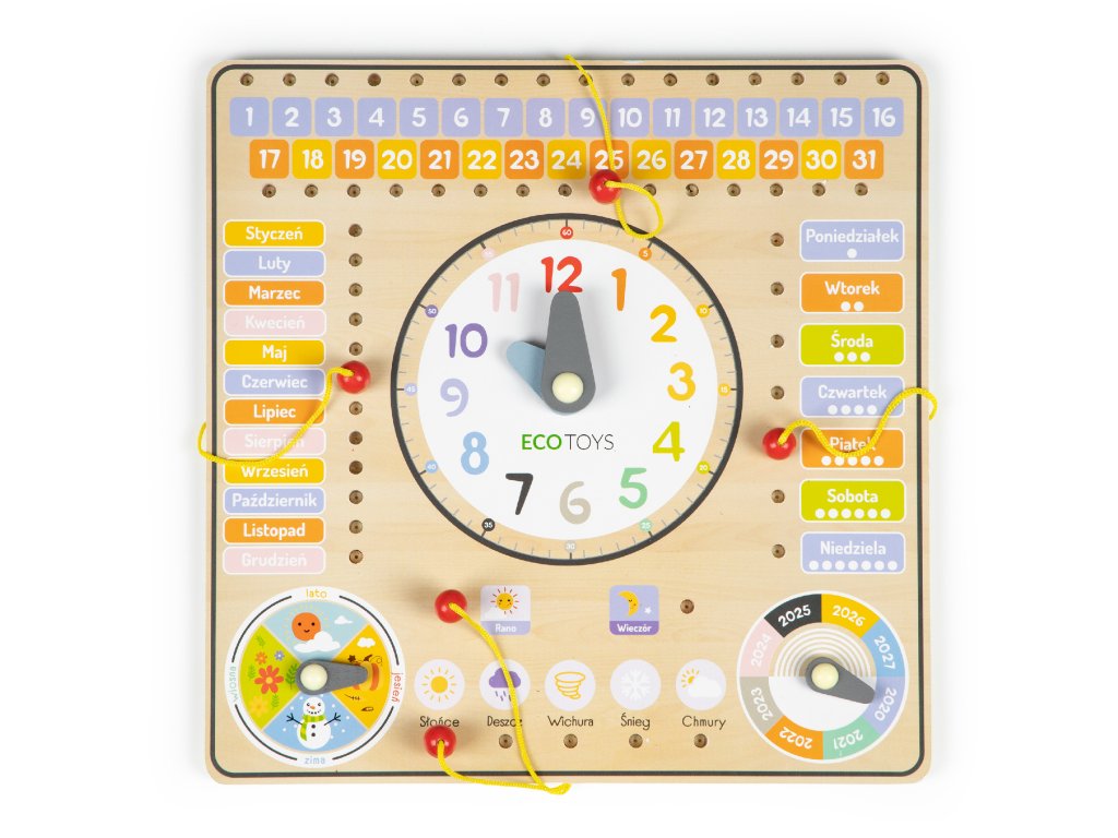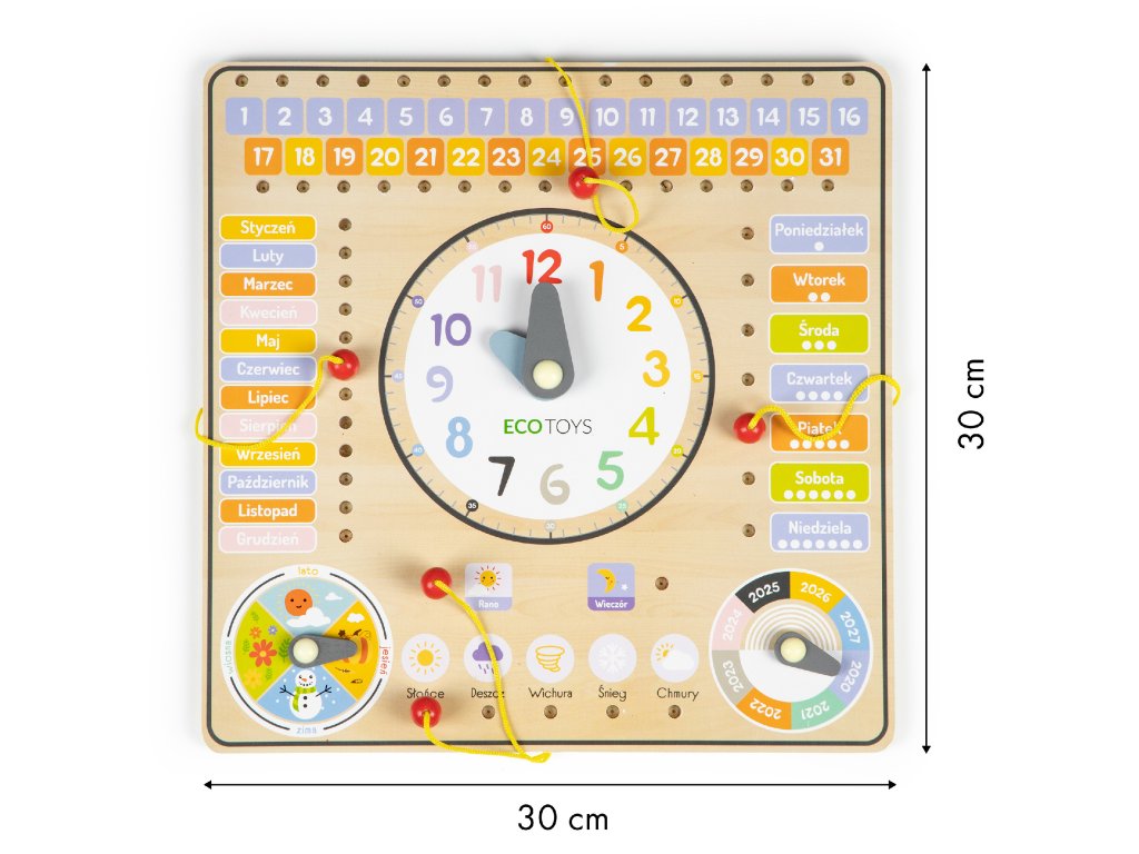 Drevená edukatívna tabuľka ECOTOYS – kalendár a hodiny