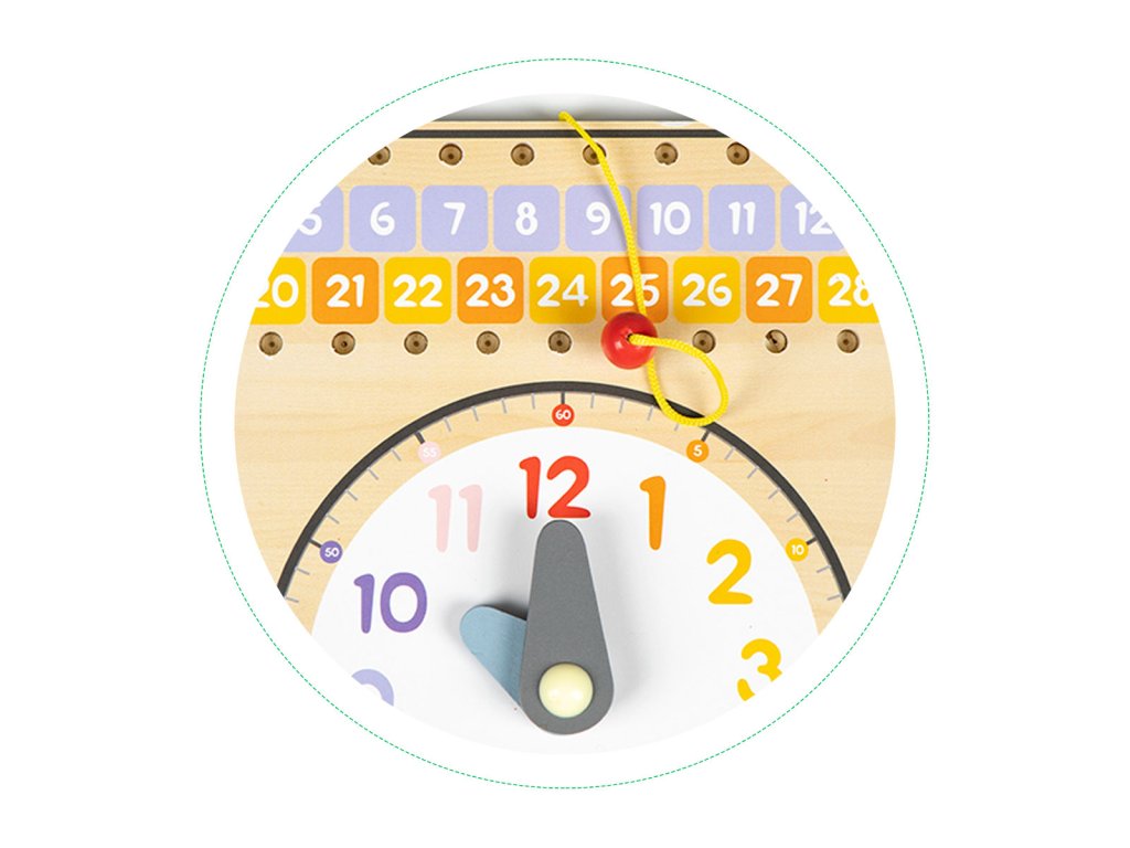 Tabuľa umožní batoľatám spoznať dni v týždni, mesiace, ročné obdobia a naučí ich správne čítať čas. Okrem učenia prinesie hračka veľa zábavy a rozvíja manuálne zručnosti dieťaťa.