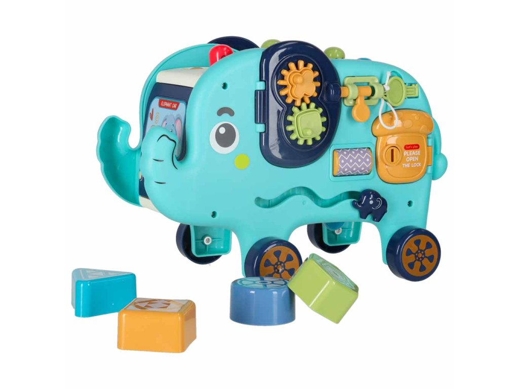 Interaktívny Montessori sloník - skvelá hračka pre každé dieťa! Rozvíja intelekt a motoriku. Obsahuje triedič, zatĺkač a manipulačnú dosku. Ideálny darček!