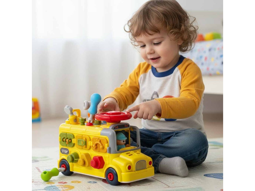 - Malá dielňa na kolieskach - autobus plný pohyblivých častí poskytuje dieťaťu priestor na objavovanie mechanizmov v praxi- Stimuluje malú myseľ - každé kliknutie, otočenie alebo otvorenie buduje pochopenie fungovania sveta- Vyvoláva prirodzenú zvedavosť - rôzne moduly podporujú experimentovanie a samostatné myslenie- Pomáha vytvárať vlastné scenáre - množstvo funkcií ideálne podporuje hranie rolí a tvorbu príbehov- Rastie spolu s dieťaťom - čím viac zručností batoľa získa, tým viac hračiek objaví v tejto jednej súprave