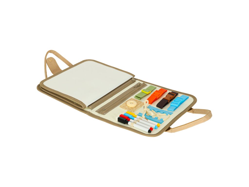 Ide o skutočnú Montessori manipulačnú tabuľu v podobepraktickéhopriečinka, ktorý umožňuje dieťaťu bezpečným a vzrušujúcim spôsobom skúšať, objavovať a precvičovať každodenné zručnosti. Táto vzdelávaciahračka vás nielen vtiahne na dlhé hodiny, ale zároveň podporuje rozvoj vášho dieťaťa na mnohých úrovniach. Je kombináciou príjemného a užitočného - radosti z hry a skutočnej podpory priučení sa samostatnosti! Hračka učí deti objavovať svet a získavať praktické kompetencie. Je to nielen skvelá zábava - je to skutočná investícia do rozvoja vášho dieťaťa.