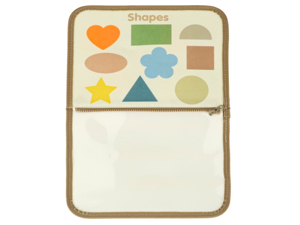 - Strana 1: 4 suché stierateľné fixkyUčíme sa zaväzovať si šnúrkyZapínanie gombíkaZapínanie zipsuZapínanie 4 rôznych praciek- Strana 2: Mäkká biela tabuľa so suchou fixou- Strana 3: Filcová strana na pripevnenie písmen- Strana 4: Filcová strana na pripevnenie číslic- Strana 5: Filcová strana na rozpoznávanie a priraďovanie tvarov- Strana 6: Filcová strana na rozpoznávanie a priraďovanie tvarov dinosaurov