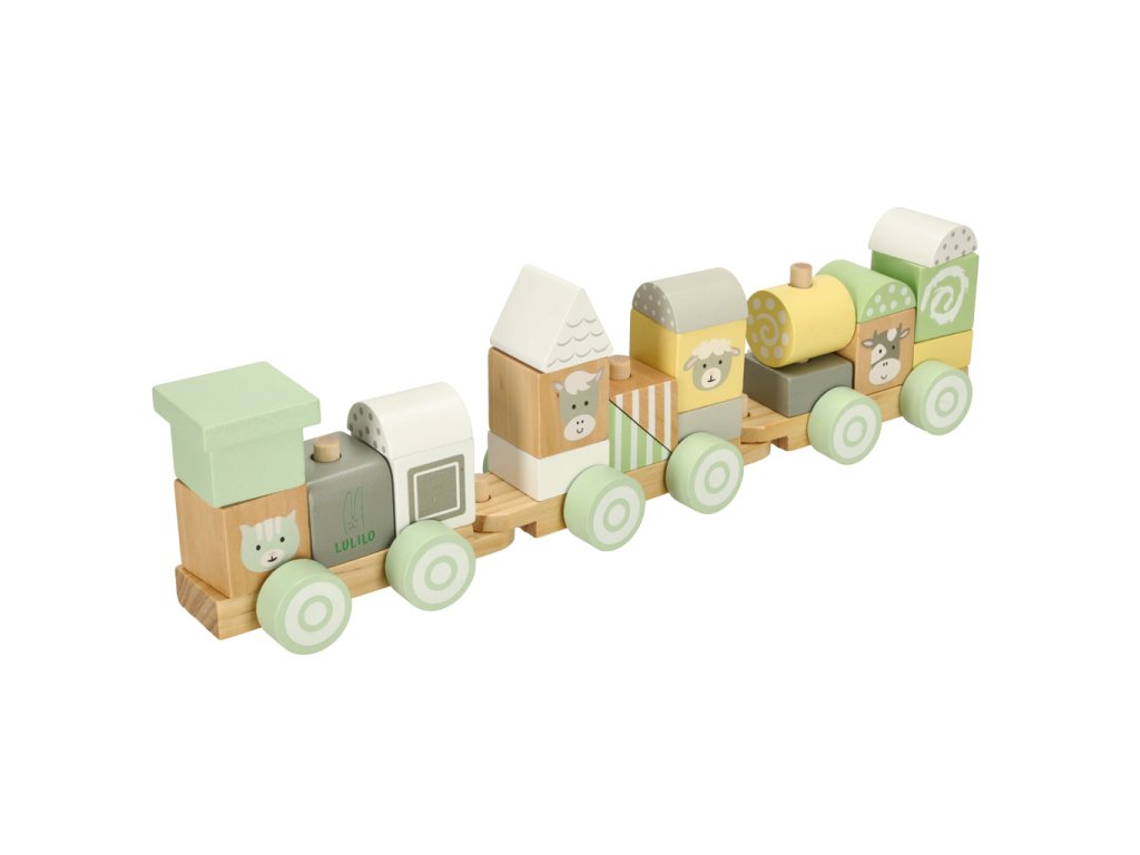 DREVENÝ VLAK VLAK PASTELOVÉ LULILO