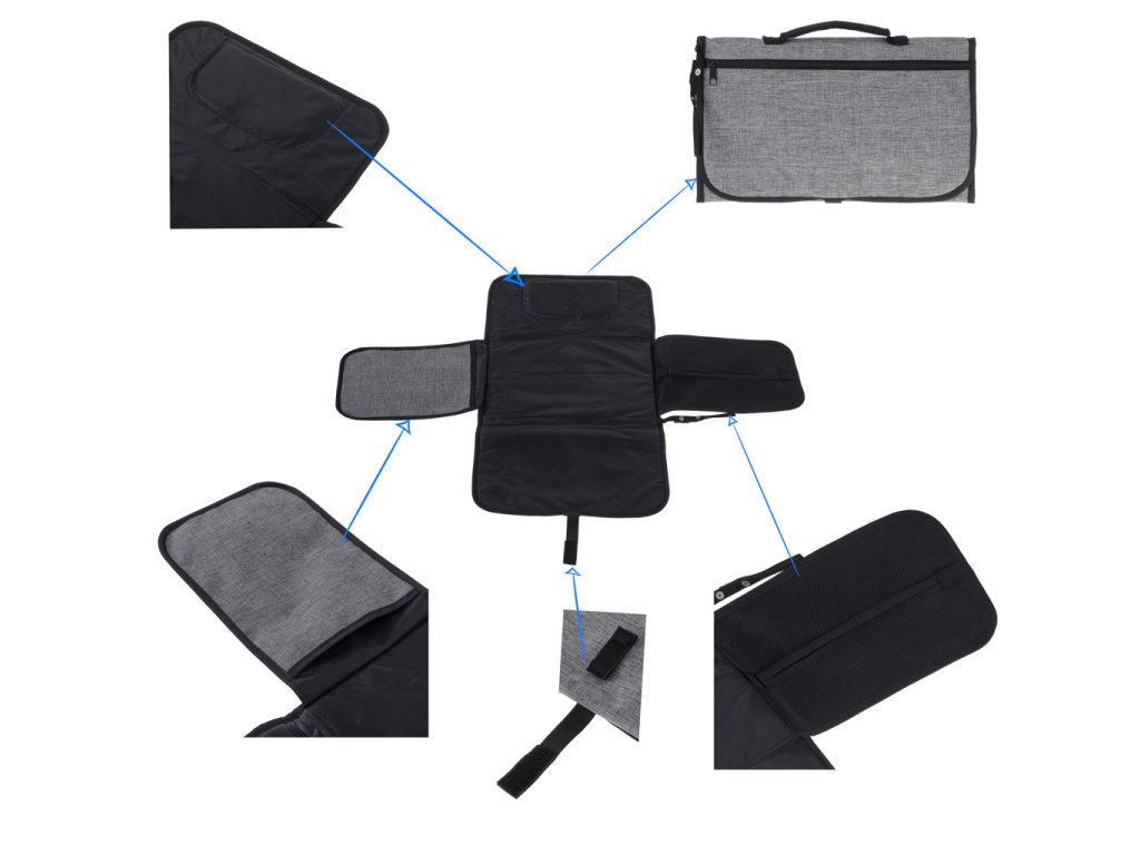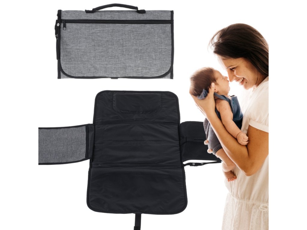 Detská prebaľovacia cestovná podložka konvertibilná prebaľovacia taška sivá