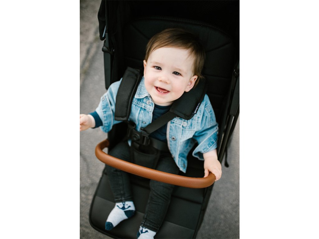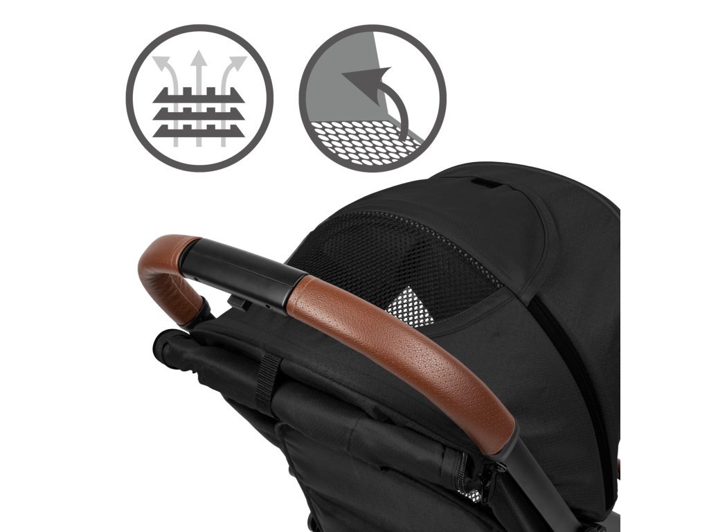 Nepremokavá a odolná látka, z ktorej je kočík vyrobený, chráni dieťa pred nepriaznivými poveternostnými podmienkami.