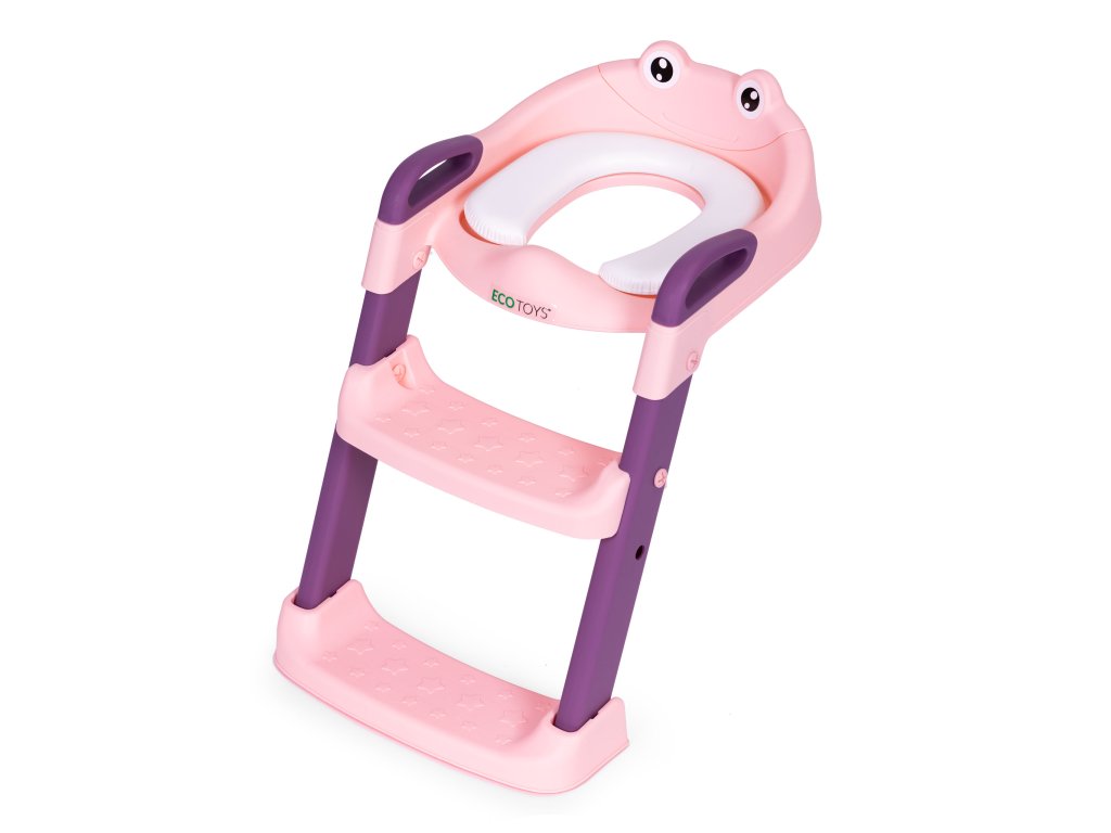 ECOTOYS nástavec na WC pre deti so schodíkmi, ružový