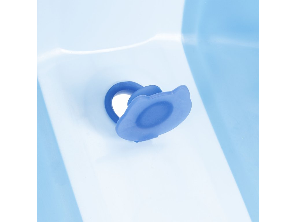 Korok umožní ľahko sa vypúšťa po skončení kúpeľa bez toho, aby ste ho museli prevracať a vylievať vodu. Pre bezpečnosť batoliat zátka je vyrobená z mäkkej gumy a nemá ostré hrany. Ďalšou funkciou korku je, že pri príliš horúcej vode mení farbu a bieli. Vďaka tomu Vaše dieťatko sa bude vždy kúpať v dostatočne teplej vode a zároveň sa vyhnete spáleniu jemnej pokožky dieťaťa.