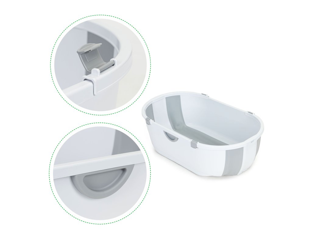 Vaňa bola navrhnutá s ohľadom na tieto vlastnosti pohodlie a bezpečnosť nielen pre dieťa, ale aj pre rodiča . Na oboch stranách má robustné rukoväte, ktoré umožňujú jednoduchú prepravu a pomáhajú pri vylievaní vody po kúpaní.