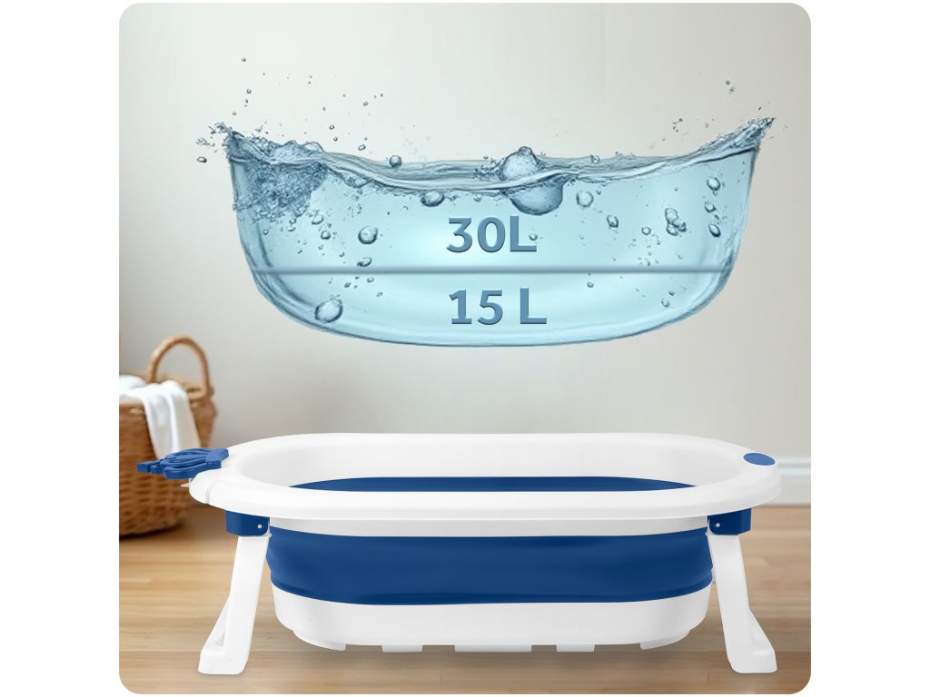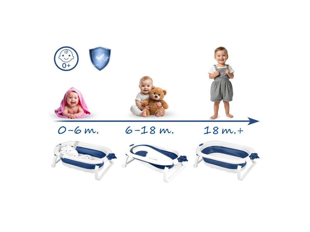 Pre batoľatá stačí naliať 15-20 litrov vody a bezpečne oprieť ležiace dieťa na špeciálny vankúš alebo na sklápacie dno vane. Vďaka veľkej kapacite 45 litrov sa však vaňa dá používať oveľa dlhšie a po úplnom naplnení vodou sa v nej môže pohodlne kúpať aj dvoj- až trojročné dieťa.