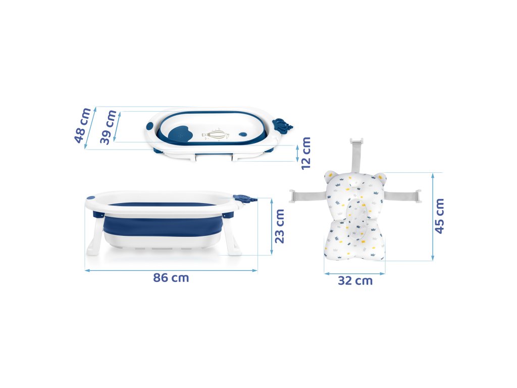 Skladacia detská vanička s vložkou Ricokids RK-286 biela a modrá