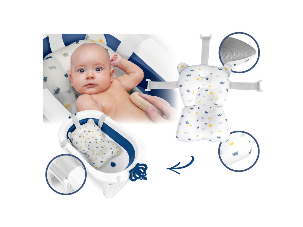 Súčasťou vane je mäkká tvarovaná vložka, ktorá jemne podopiera hlavu a chrbát dieťaťa. Vďaka trom robustným úchytom ho bezpečne pripevníte k okrajom vane - žiadne skĺznutie, žiadny stres. Vložka je vyrobená z rýchloschnúci materiál takže po kúpaní ju môžete v okamihu vybrať a vypustiť. Maximálne pohodlie a hygiena počas každej chvíle strávenej vo vode!