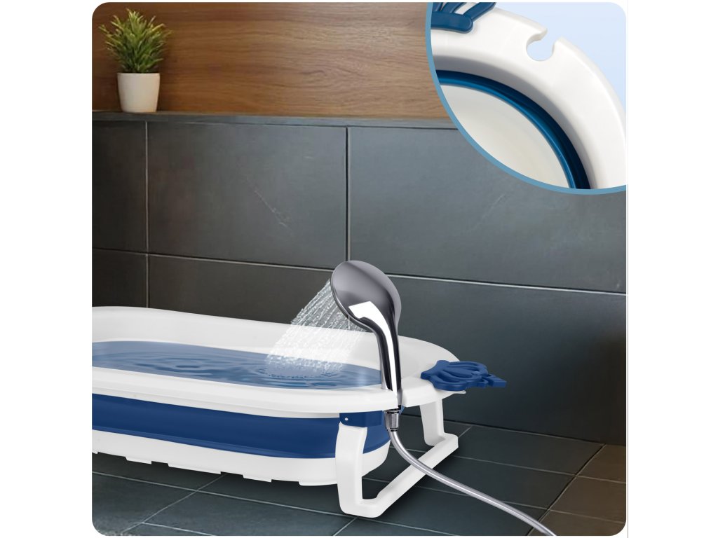 Vďaka integrovanému držiaku sprchovej rúčky je kúpanie mimoriadne pohodlné a bezpečné. Pevne pripevnená rukoväť umožňuje voľné nalievanie vody bez špliechania - jednoducho umiestnite vaňu, nalejte presne toľko, koľko potrebujete, a nasmerujte prúd v správnom uhle.
