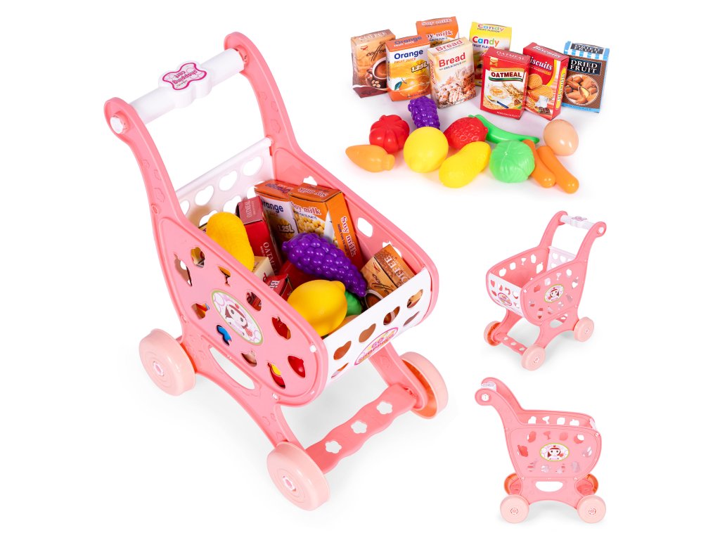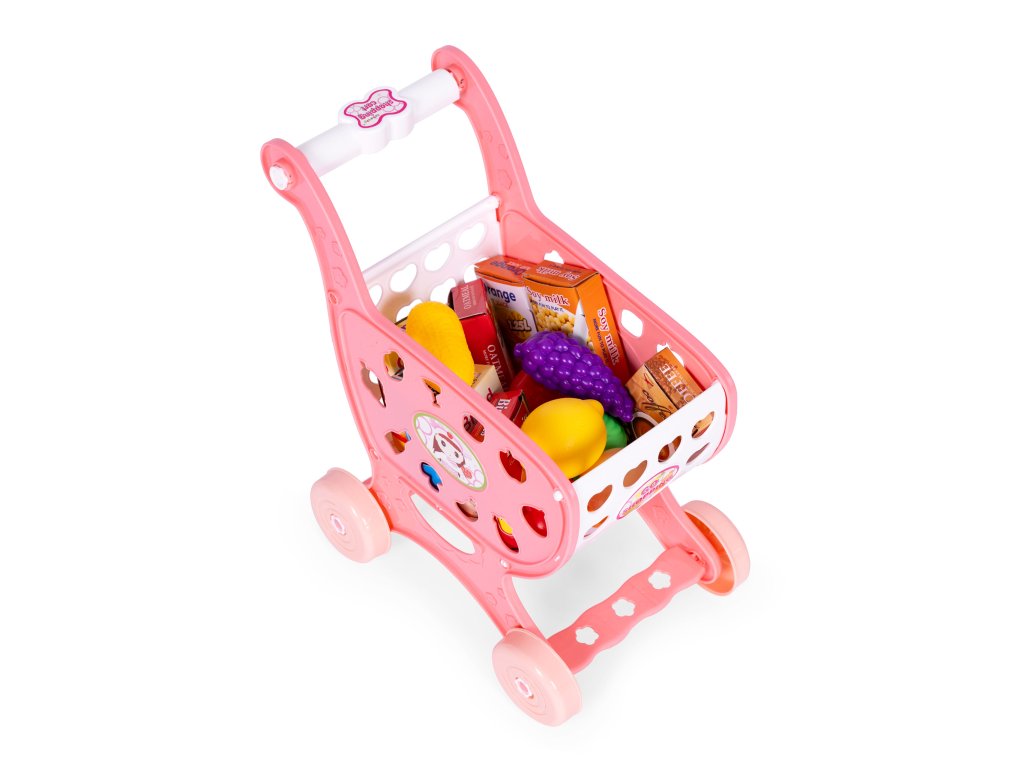 Súprava obsahuje autentickévyzerajúci nákupný vozík s rôznymi potravinami, ktorý pomáha rozvíjať motorické a organizačné zručnosti. Batoľatá sa môžu tešiť z mnohých imitácií skutočných výrobkov, od zeleniny až po sladkosti, vďaka čomu je učenie sa nakupovať fascinujúcim zážitkom.