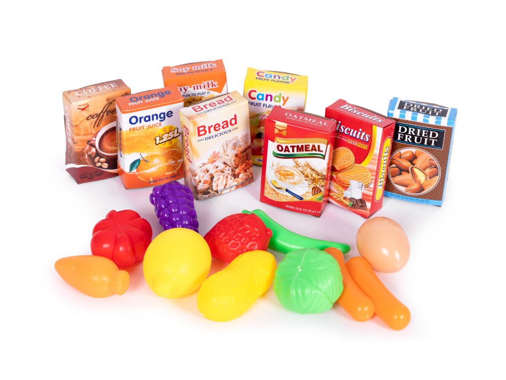 Nákupný vozík na hračkyspolu so sadou potravinových výrobkov prenesie batoľatá do fascinujúcej úlohy malých kupujúcich a predavačov. Táto kompletná sada podporuje rozvoj sociálnych zručností a tvorivosti a ponúka deťom nezabudnuteľnýdobrodružstvo vo svete nakupovania.