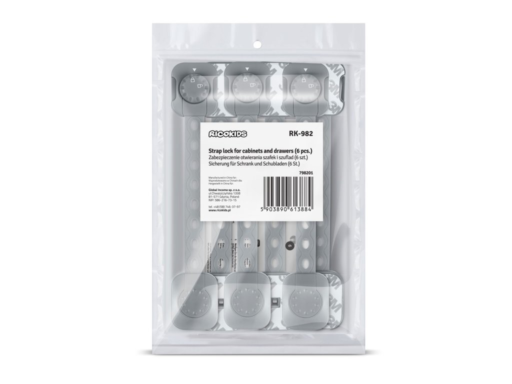 Ricokids bezpečnostné zariadenie na otváranie skríň 798201 6 ks sivé