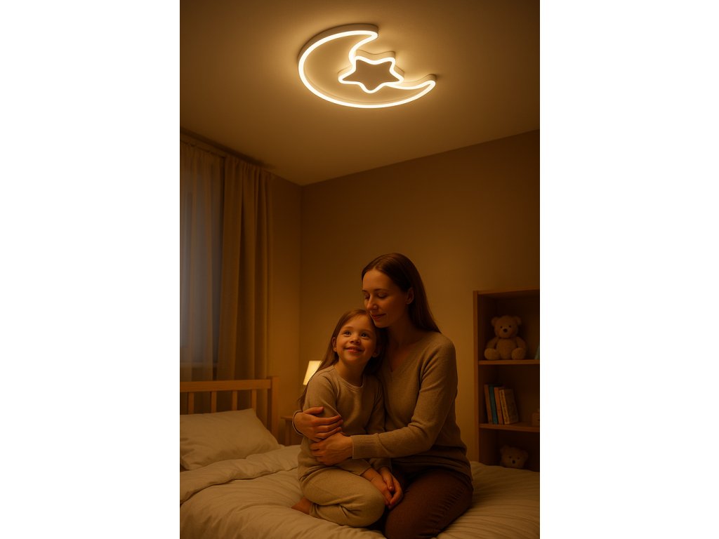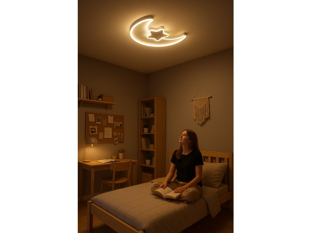 Toto ľahké a ľahko inštalovateľné LED stropné svietidlo s motívom mesiaca vám umožňuje pohodlne nastaviť farbu a intenzitu svetla vo vašej miestnosti. Vyžaruje studené a teplé svetlo, ktoré je možné diaľkovo prepínať. Studené osvetlenie pomáha sústrediť sa a stimuluje myseľ, vďaka čomu je ideálne na čítanie alebo štúdium. Teplé svetlo vytvára v miestnosti útulnú a pokojnú atmosféru, podporuje relaxáciu a zlepšuje kvalitu spánku. Stmievač stlmí nadmerne jasné svetlo a vytvorí tak útulnú atmosféru súmraku.