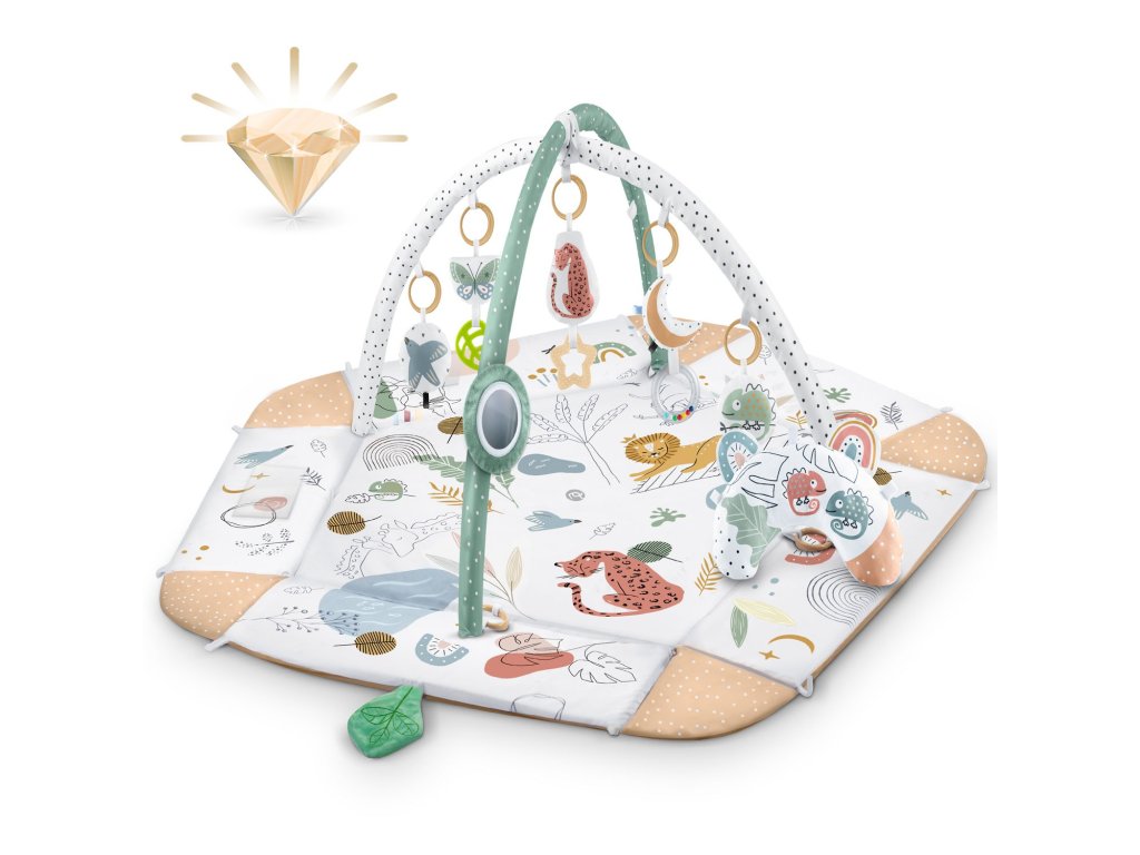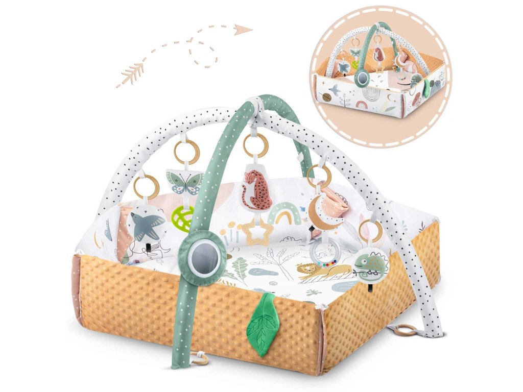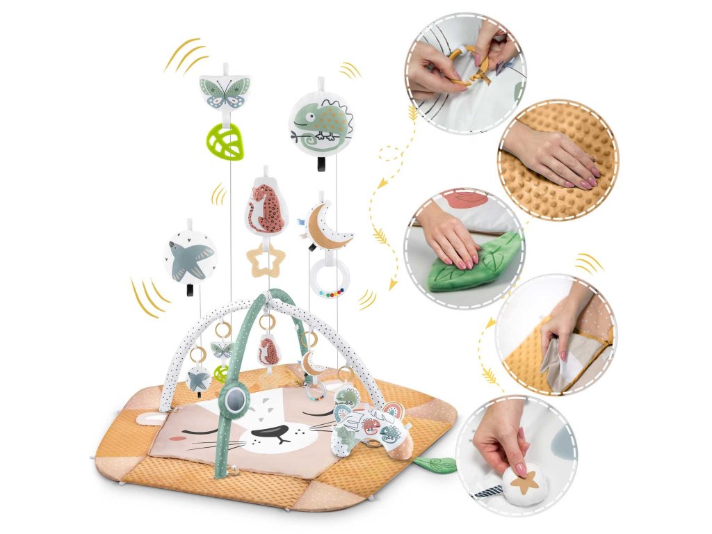 - sada obsahuje: podložku, 5 stien, 2 oblúky, 7 multifunkčných hračiek vrátane Vankúš ZDARMA na ležanie na bruchu,