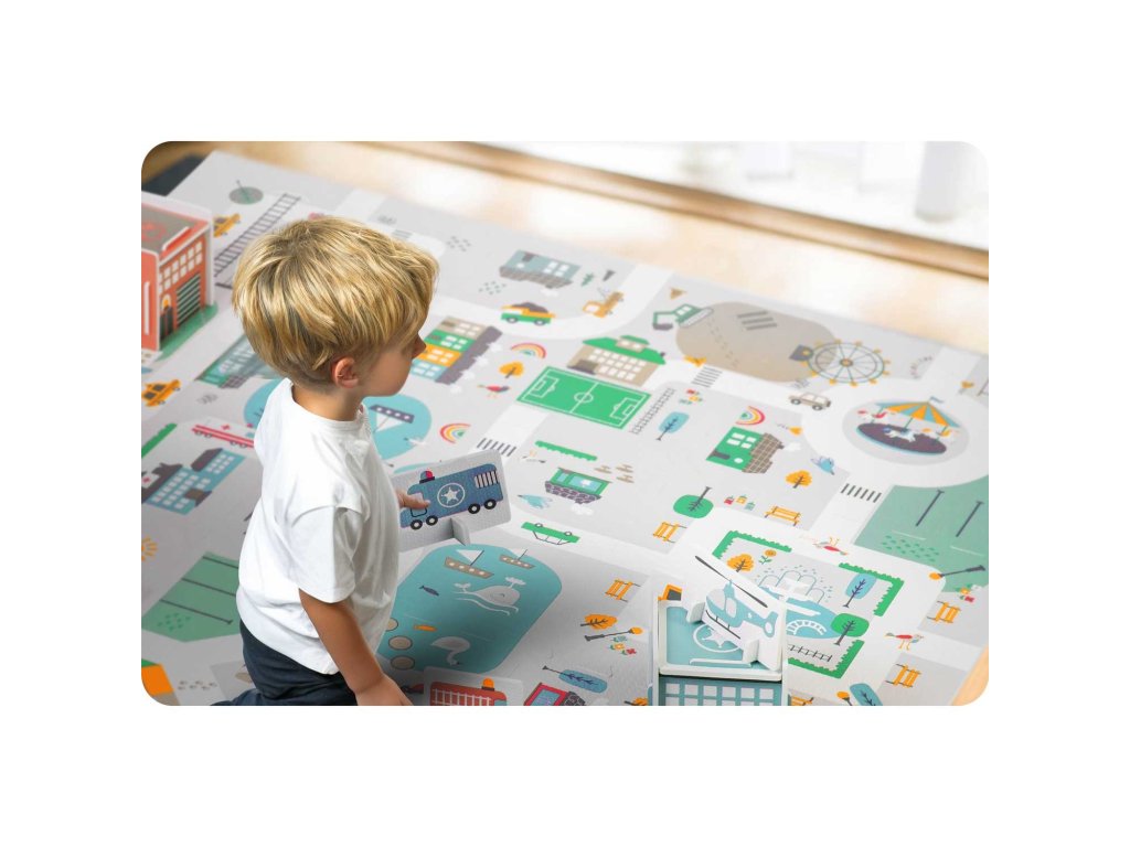⭐ Skladacia podložka s potlačou mesta môže byť skvelým nástrojom na vzdelávanie. Deti sa môžu naučiť rozpoznávať prvky mestskej infraštruktúry, ako sú budovy, cesty a vozidlá, a môžu tiež rozvíjať svoju predstavivosť vytváraním vlastných príbehov a scenárov.