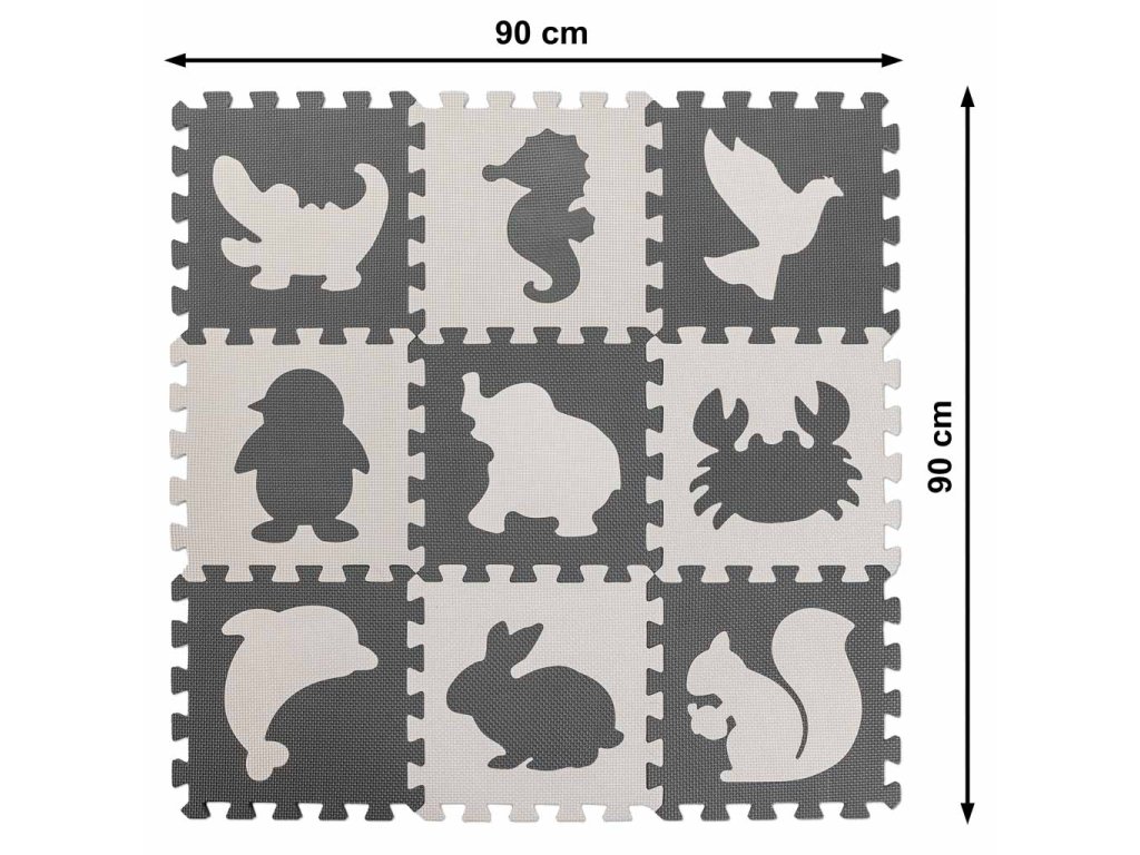 Penová podložka na puzzle pre deti 9 el. čierna-ecru 85cm x 85cm x 1cm
