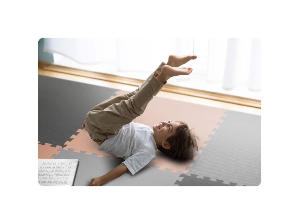 Ricokids veľká penová podložka na puzzle 180x180cm 9 ks sivo-broskyňová