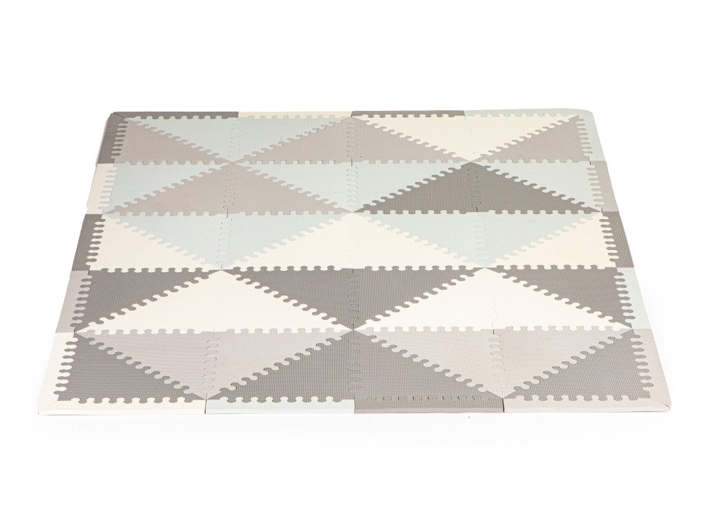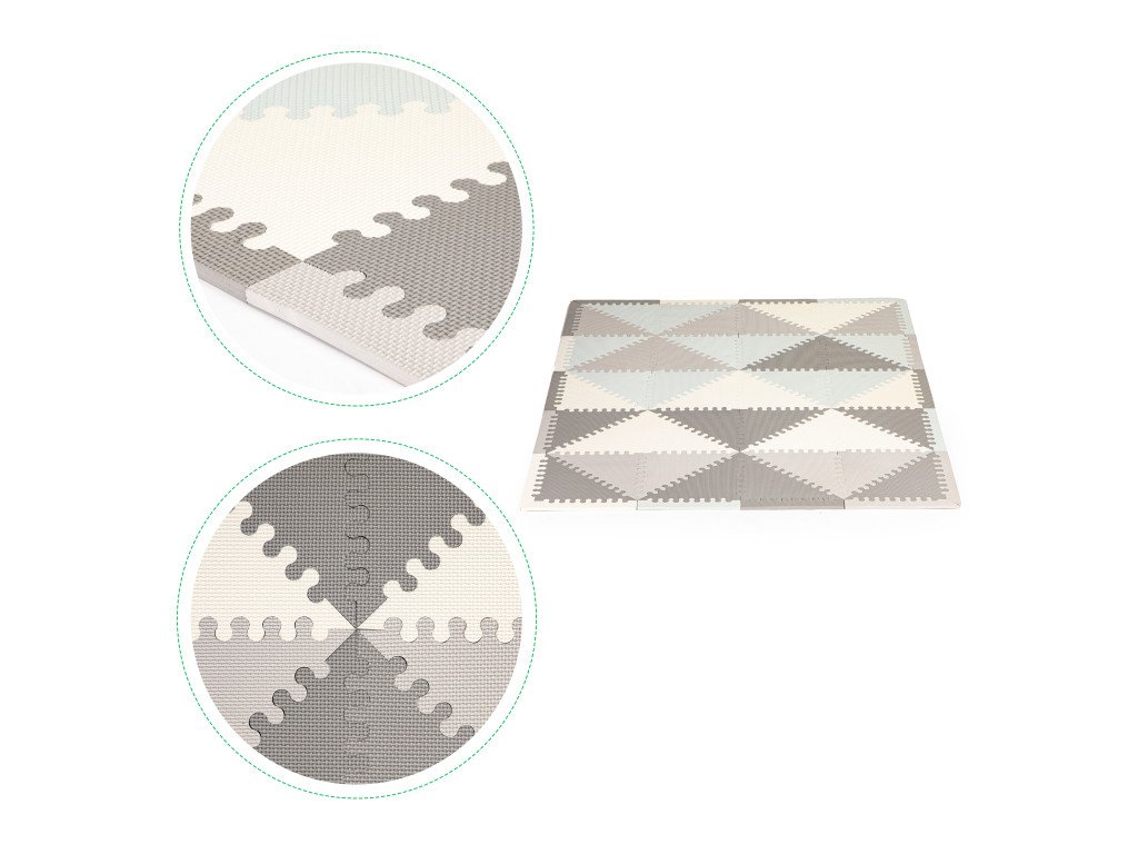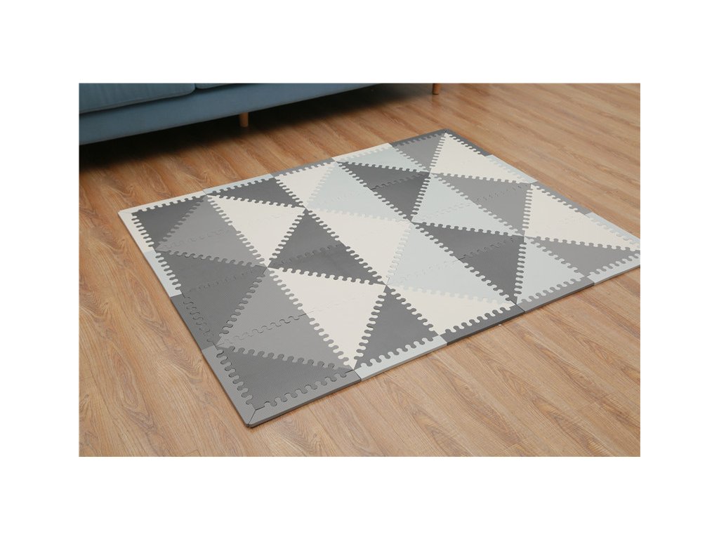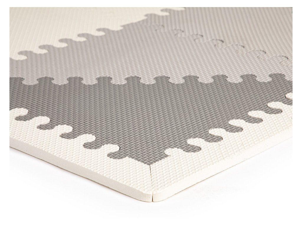 - Podložka sa skladá z trojuholníkov, ktorých okraje majú špeciálne "zuby", ktoré umožňujú ich ľubovoľné spojenie.Hrúbka podložky ( 1 cm ) poskytuje dostatočnú ochranu pri páde a je príjemne mäkká.