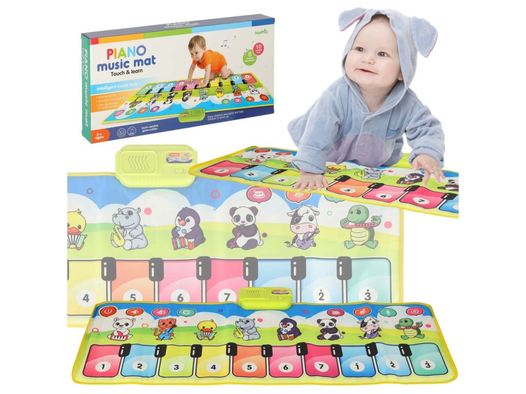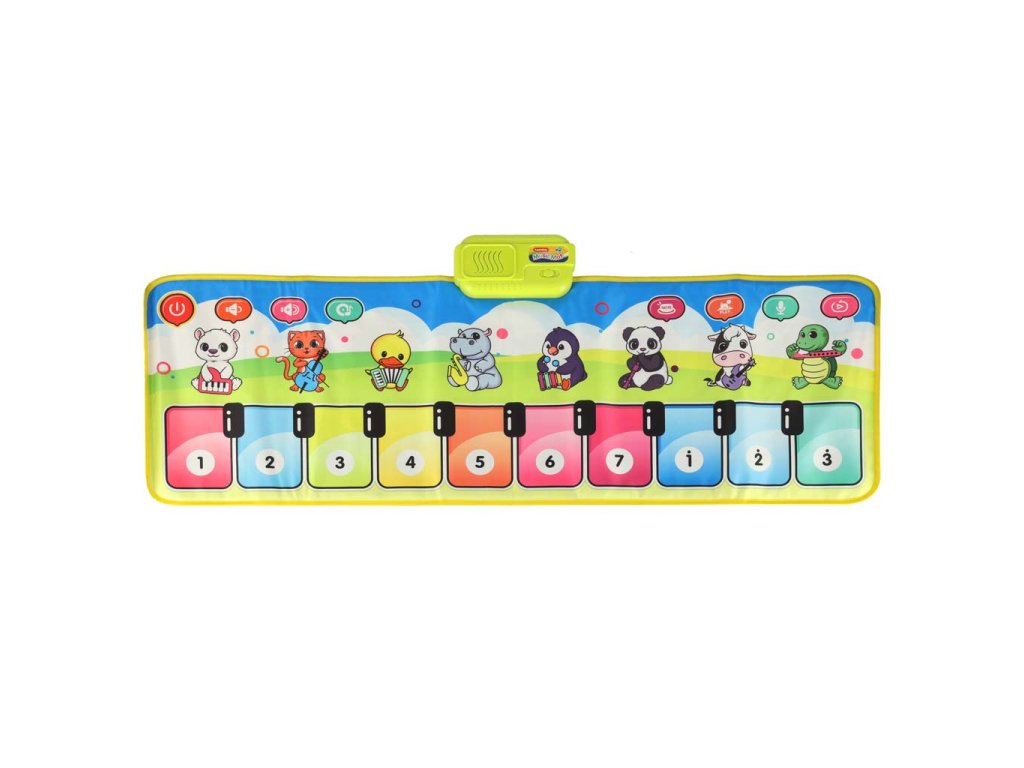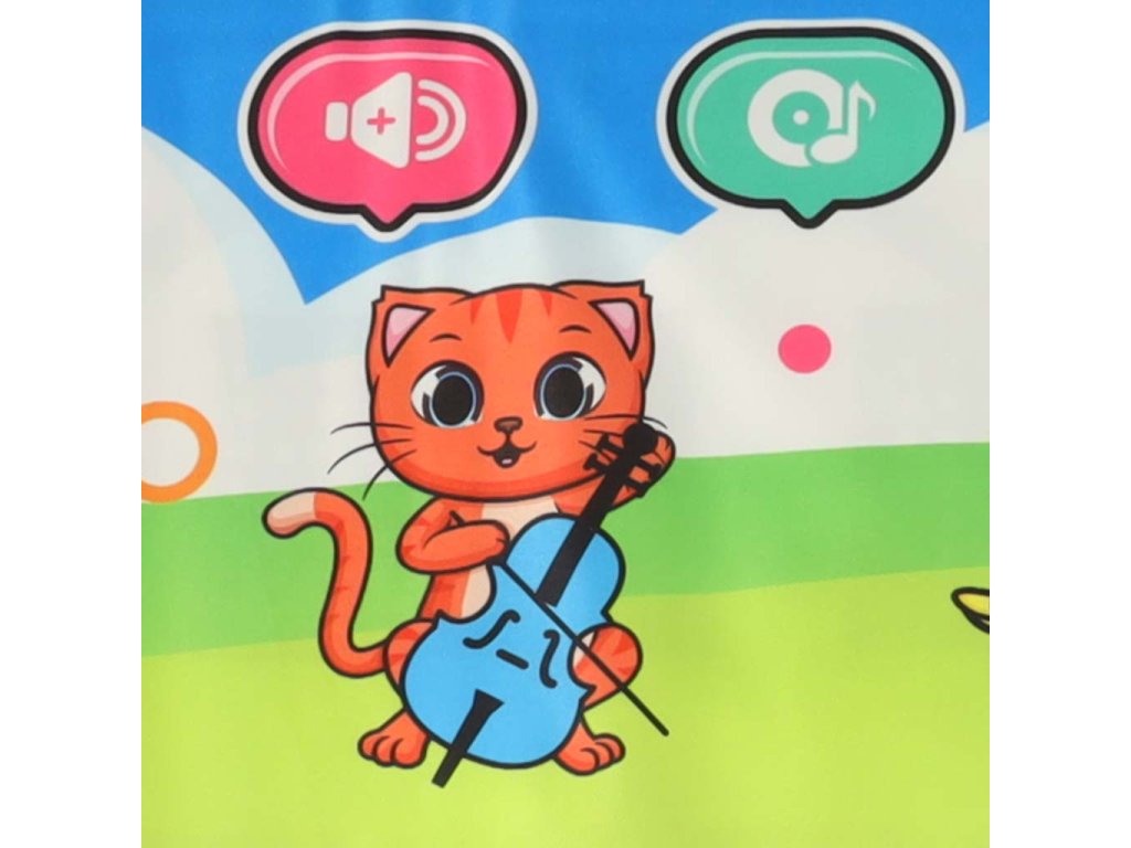 Na povrchu podložky nájdete obrázky na aktiváciu zvukov:8 zvieratiek: medvedík s klavírom, mačiatko s violončelom, kačička s akordeónom, hroch so saxofónom, tučniak s cimbalom, panda s klarinetom, krava s gitarou a korytnačka s flautou.