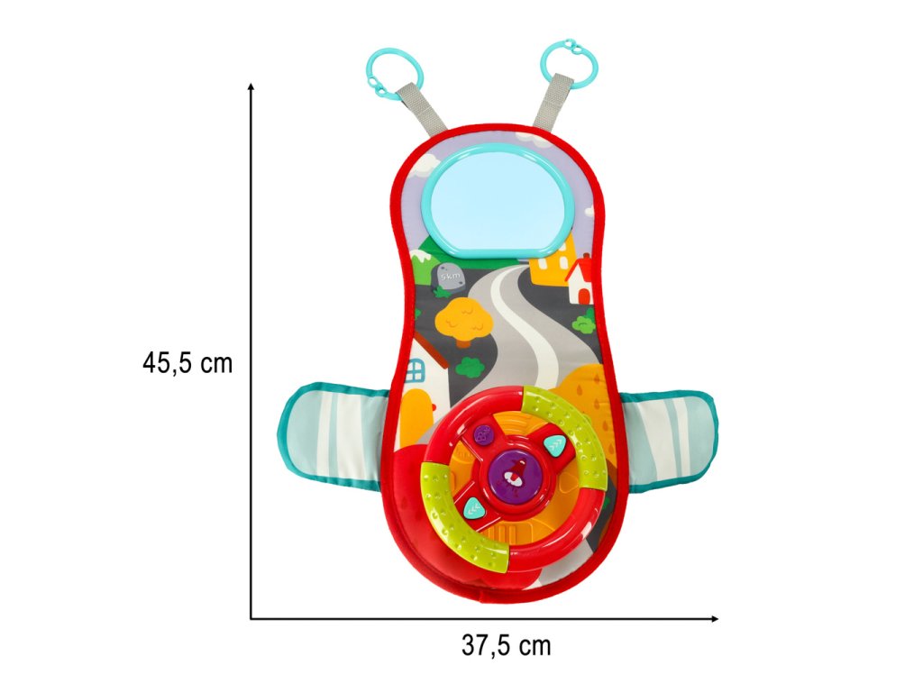 Praktické prísavky a nástavce umožňujú pripevniť volant na kočík, autosedačku alebo na stenu či stôl. S ním bude každá cesta autom zaujímavejšia!