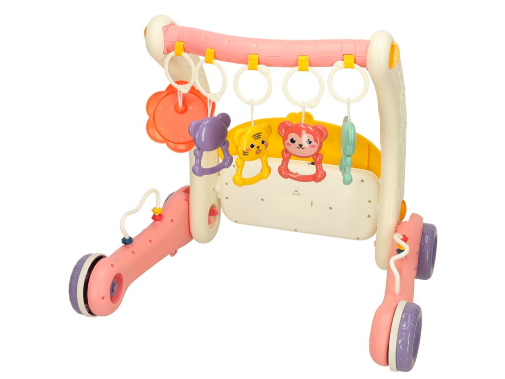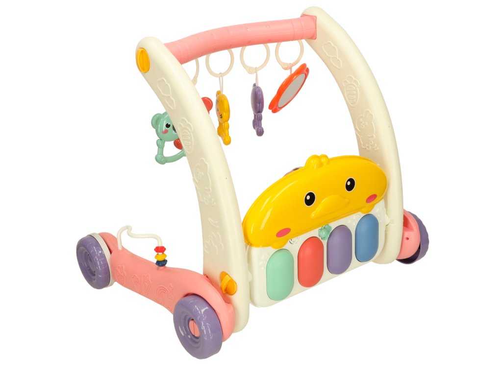 Ružové chodítko podporuje motorický, kognitívny a zmyslový vývoj dieťaťa. Pravidelnou hrou si batoľa precvičuje motorickú koordináciu a rozvíja svoju zvedavosť o svete.