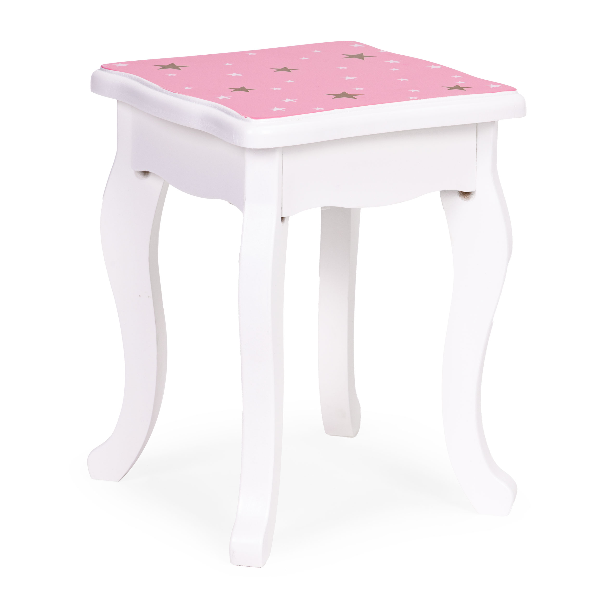 Prispôsobené výške dieťaťa stolička (výška 35,5 cm) poskytne pohodlné miesto na sedenie pri nanášaní make-upu alebo starostlivosti o pleť. Nábytok je zladený s toaletným stolíkom, takže vytvára štýlový set.