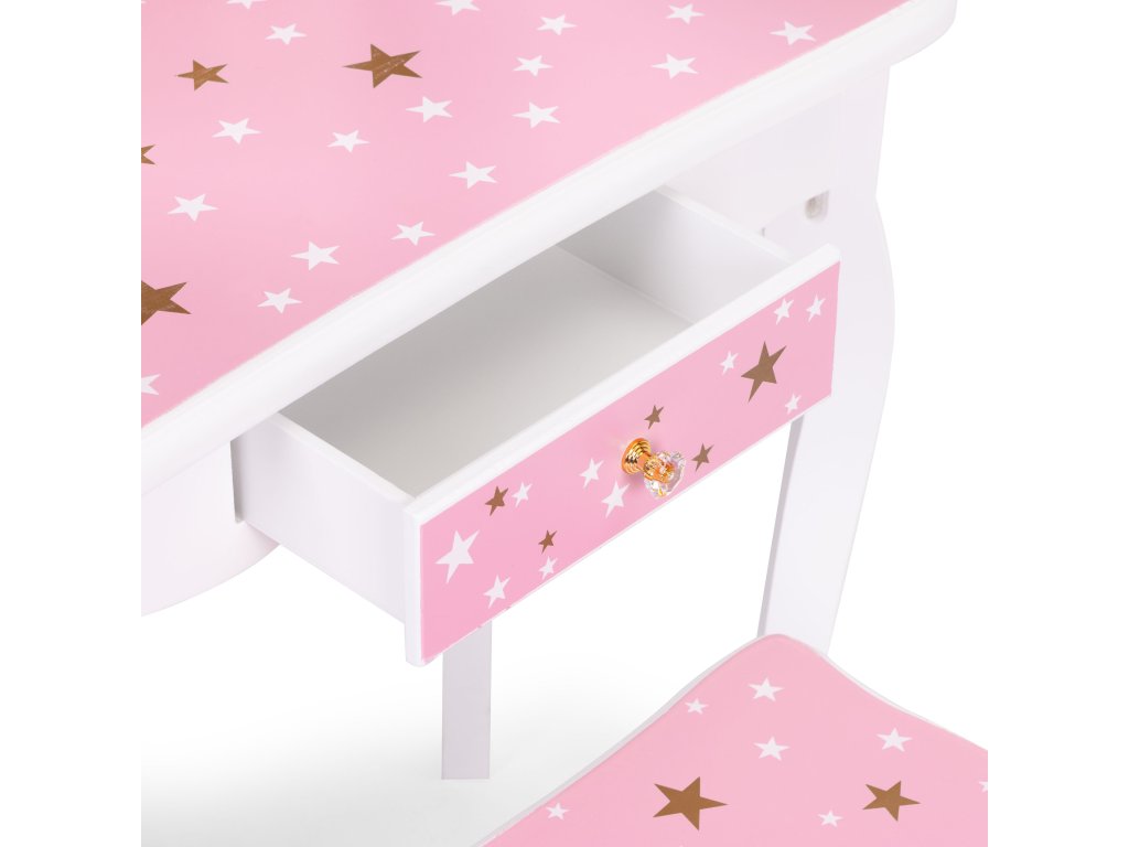 Prispôsobené výške dieťaťa stolička (výška 35,5 cm) poskytne pohodlné miesto na sedenie pri nanášaní make-upu alebo starostlivosti o pleť. Nábytok je zladený s toaletným stolíkom, takže vytvára štýlový set.