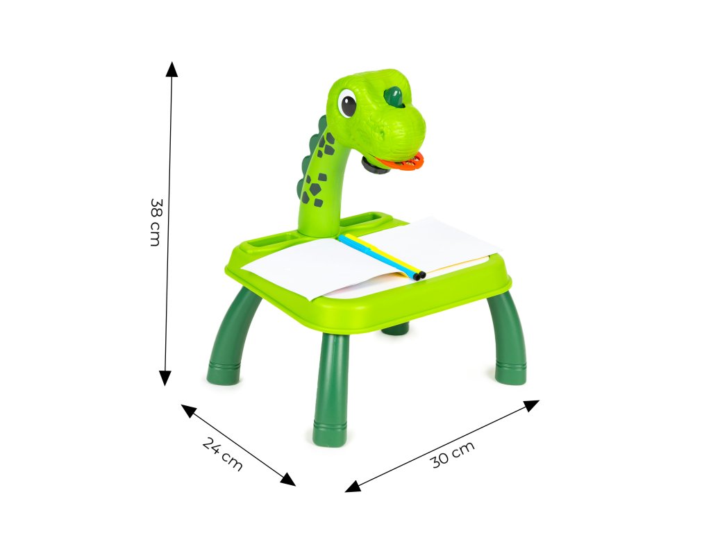 Motív dinosaura, ktorý zdobí náš projektor, mu dodáva ďalšie čaro.Deti milujú dinosaury, takže tento projekt ich podnecuje k tvorivej zábave a objavovaniu sveta prehistorických tvorov.