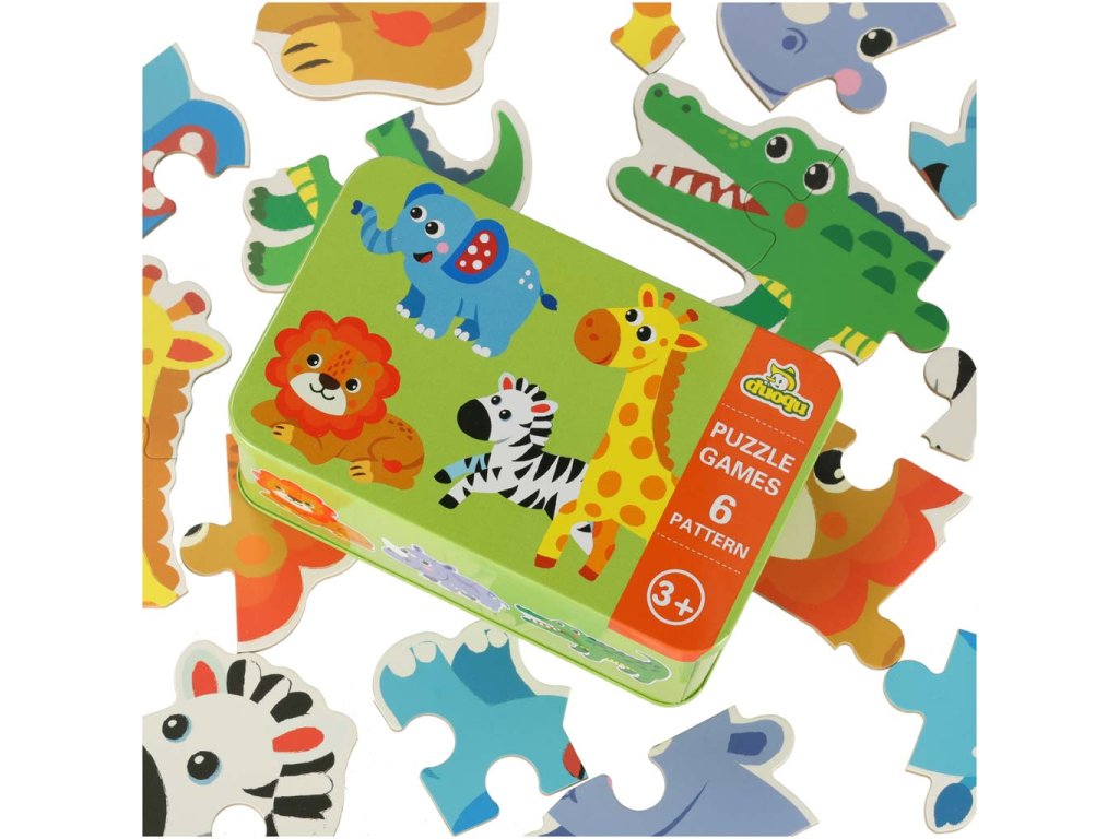 Puzzle v plechovke safari zvieratá 25 ks