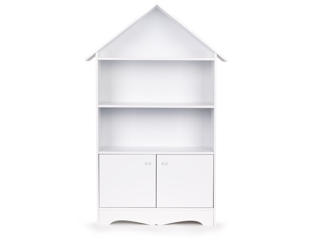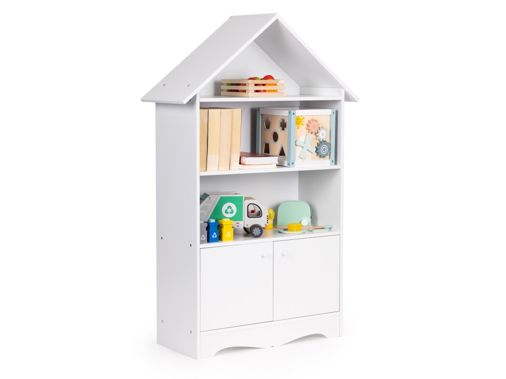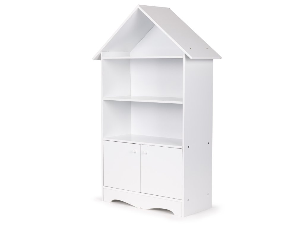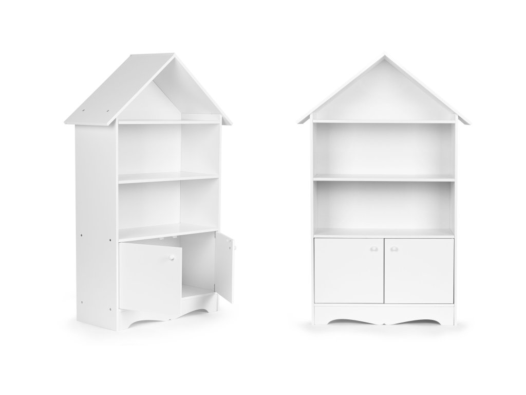 Knižnica v tvare domčeka je kus nábytku, ktorý sa bude dobre vynímať v každej detskej izbe, udržuje poriadok. V policiach a uzamykateľnej skrinke nájdete obľúbené knihy, hračky a všetko, čo má vaše dieťa rado po ruke. Vďaka bielej farbe je regál sa dokonale hodí do každého typu interiéru.