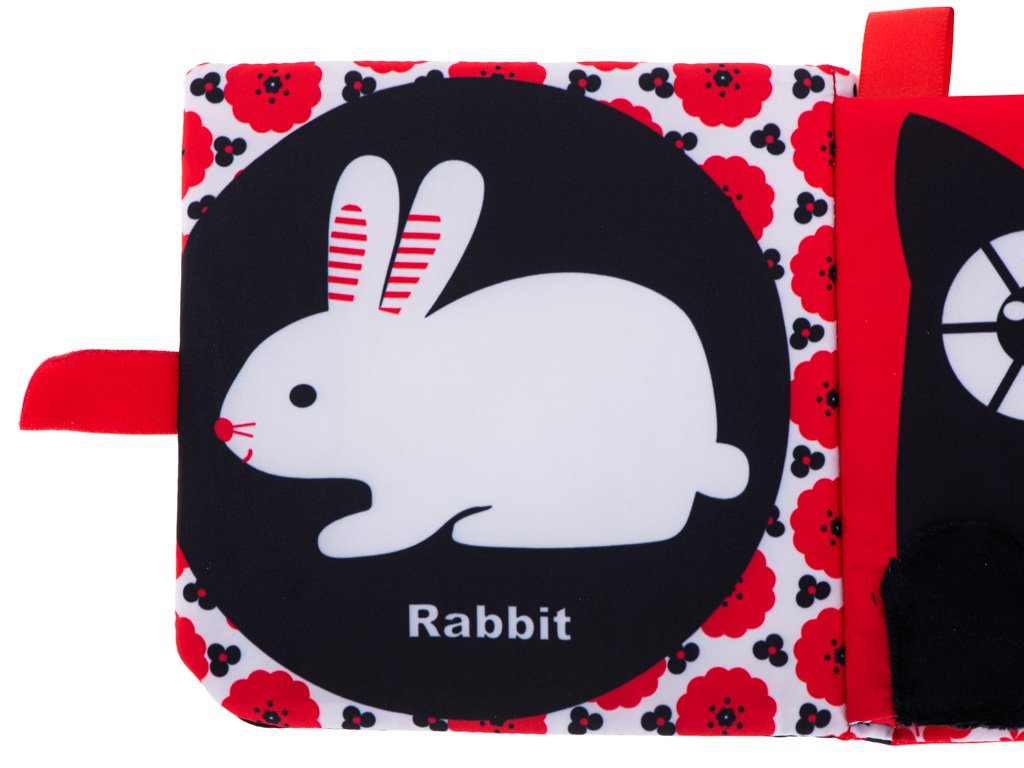 Kúzelná textilná kniha s kontrastnými vzormi je skvelá pre deti, ktoré práve začínajú objavovať svet. Biele, čierne a červené obrázky budú skvelým úvodom do poznávania zvierat.