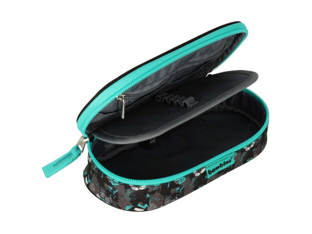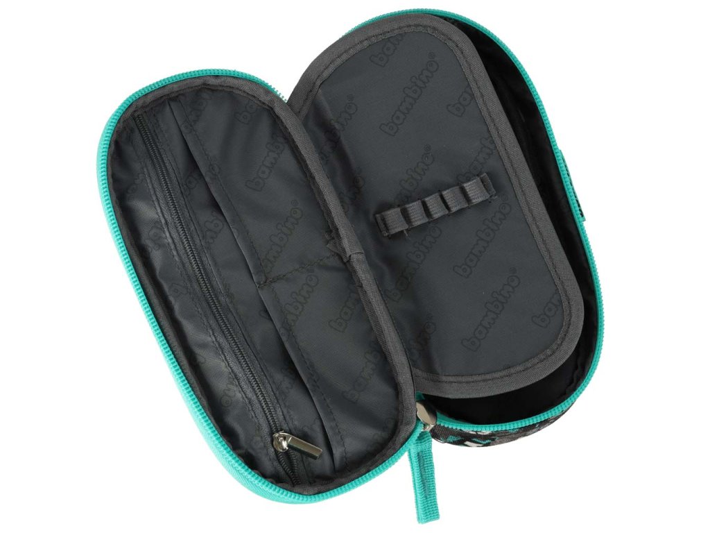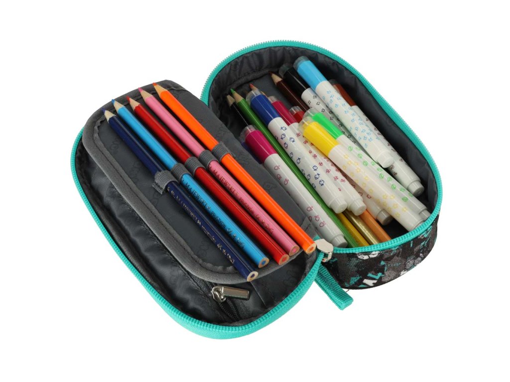 Praktický peračník s vnútornými priehradkami, chlopnami a množstvom príloh na usporiadanie školských potrieb. S grafickým motívom, rozvrhom hodín a tabuľkou násobenia. Ergonomické držadlo, uzatvárateľný na zips. Rozmery: 21x14x3,5 cm.