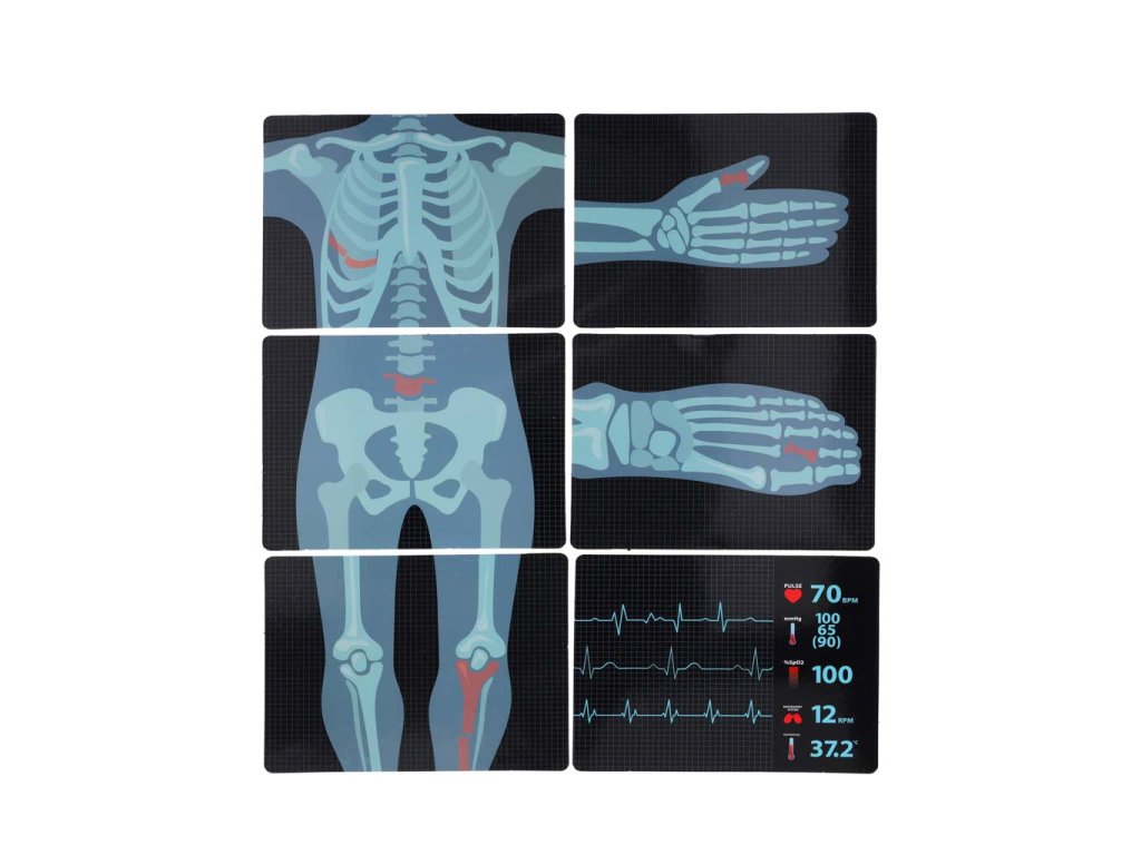 - 6 röntgenových snímok a snímok EKG