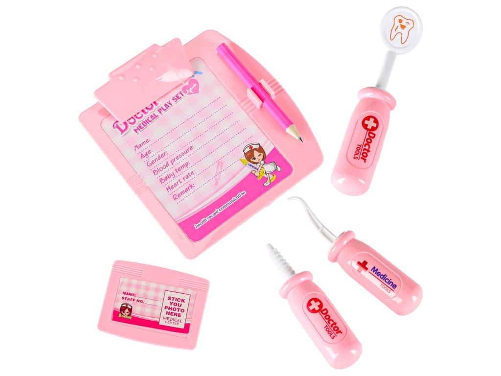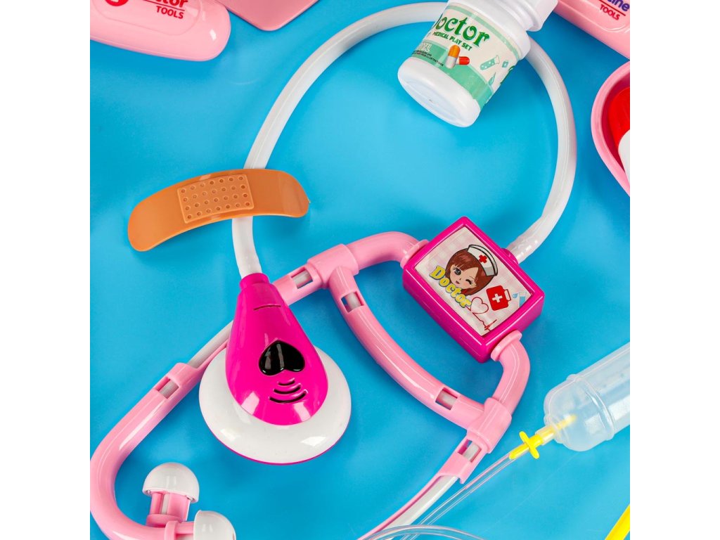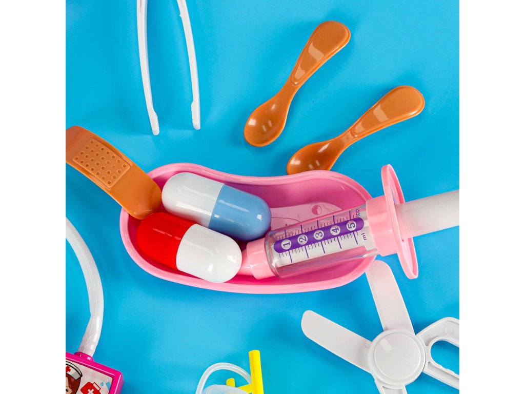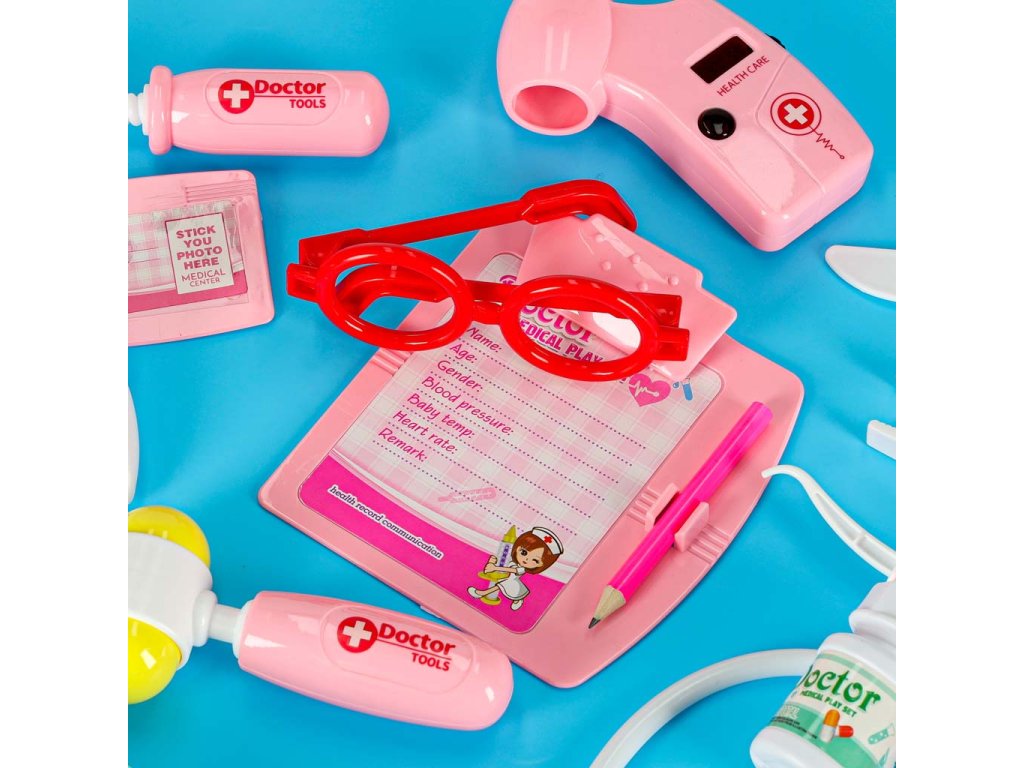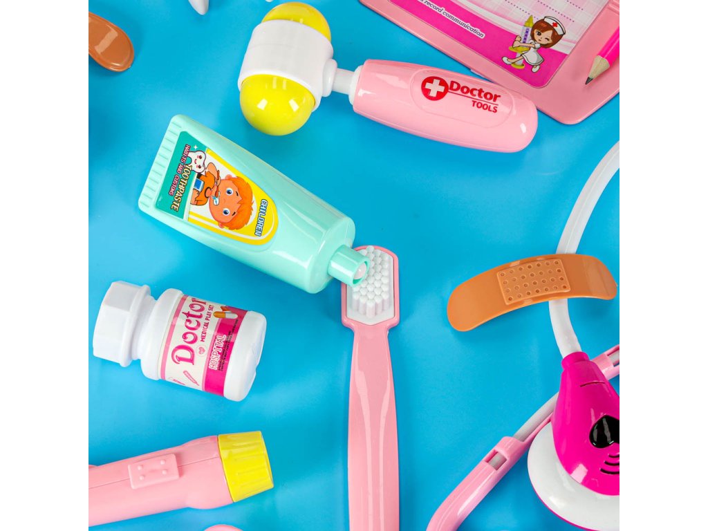 Počas hry môže dieťa hrať scénky z lekárskej ordinácie alebo nemocnice, podávať pacientom hračkárske lieky, aplikovať obväzy, podávať injekcie alebo sa pripájať na infúziu. S hračkami na batérie môže batoľa počúvať tlkot srdca pomocou stetoskopu, pozerať sa do ucha pomocou otoskopu alebo merať pulz pomocou pulzného oxymetra. Podložka s klipom a ceruzkou umožňuje umiestniť zápisník, do ktorého si dieťa bude robiť poznámky o pacientoch.